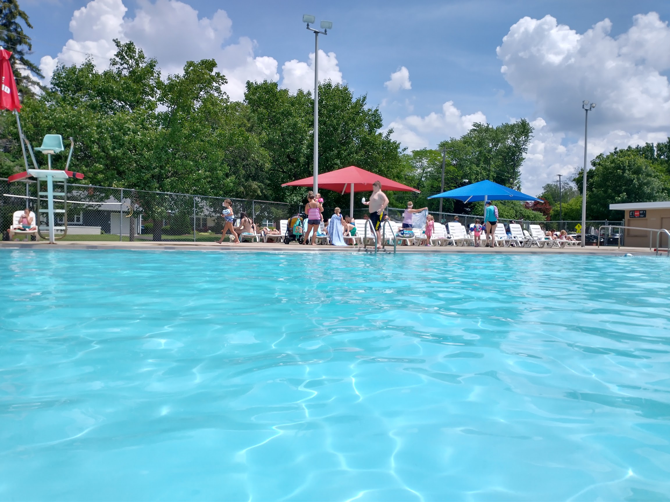 What are people saying (AI review summary)? This pool receives mixed but generally positive reviews. Many praise its family-friendly features like a 4ft depth, various water attractions for kids (bucket, mushroom waterfall, shoots), and an easy ramp entrance. The concession stand is noted as reasonably priced and the staff, including lifeguards, are often described as friendly and numerous. However, a recurring issue is the significant crowding, which can lead to difficulties finding parking, warm and cloudy/yucky water, and in one instance, bug bites in the showers. While the bathrooms were recently redone and are clean, the high visitor volume often impacts the overall water quality and comfort.