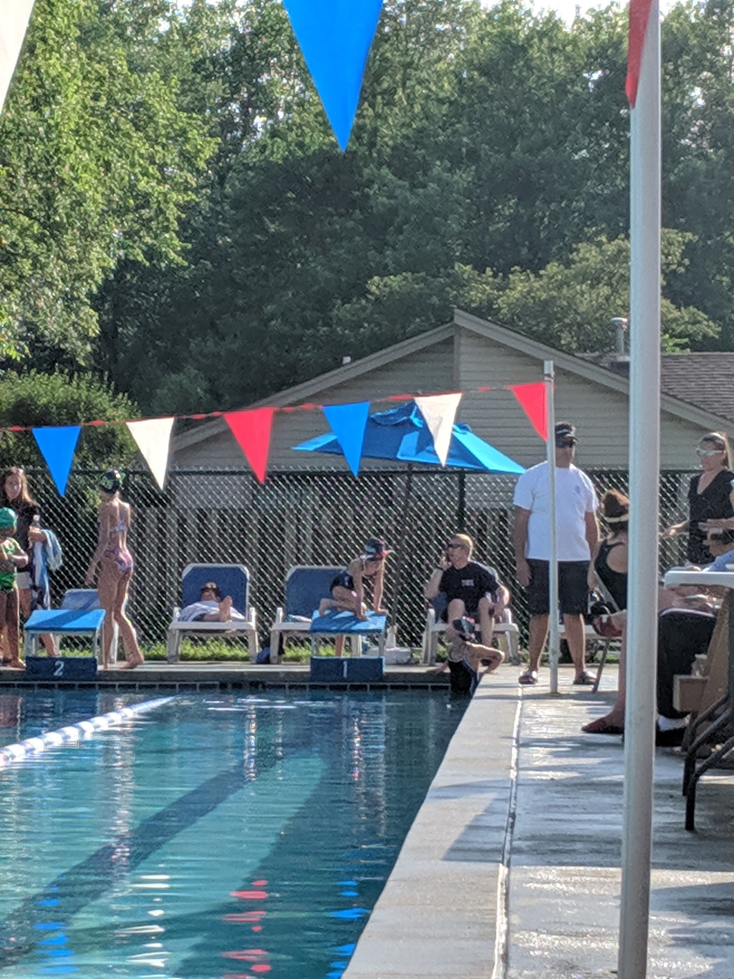 Very nice pool. There is a wading pool for little ones to join the fun. They have a lifeguard on duty when the pool is open. I haven't been in the pool house, but it looked like games and seating area was there. Must be member though by living in that development, so they give you a key. Nice and clean.
