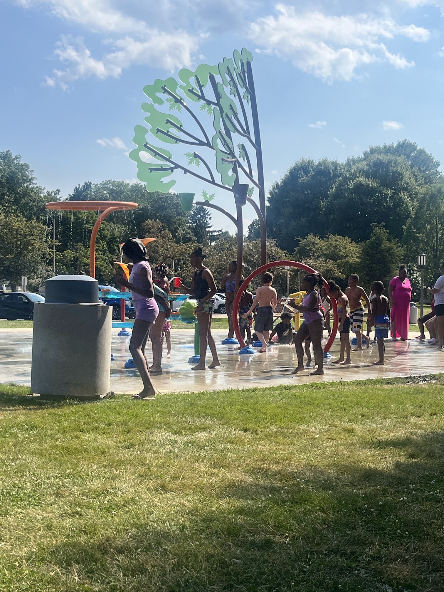 I took my three year-old and four more kids to the splash pad. I always enjoyed myself there. The only downside that I had was the teenager group walking around, and play fights and cusses not to far away from the little kids. But they can be respectful when you tell them to calm down a bit. They are kids too so dont expect the park to be rated PG everytime. Other than that, it’s a pretty convenient way to cool down for the summer. ❤️