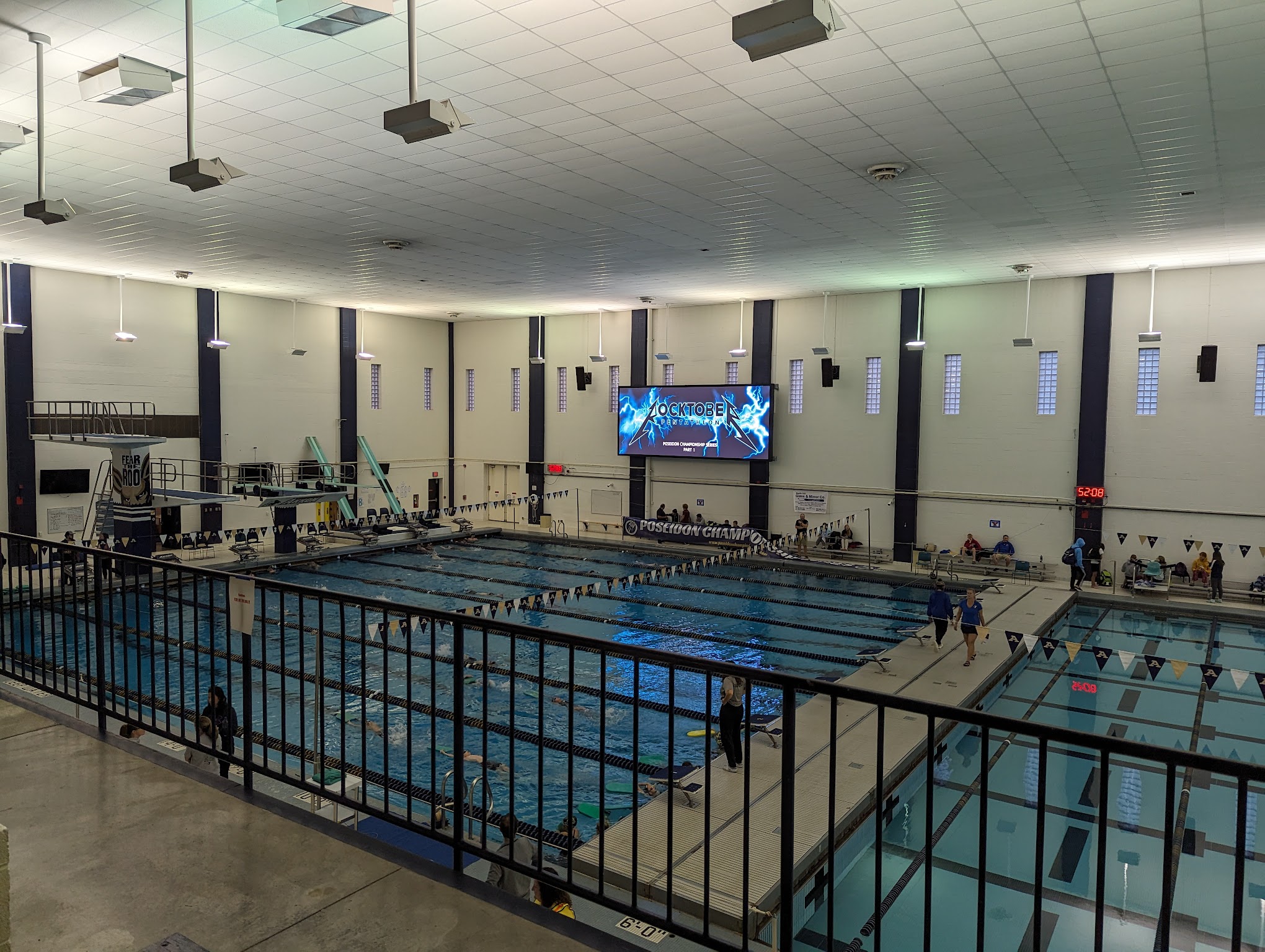 Nice facility. Stadium seating makes watching the swimming events nice. Concessions are minimal, so pack your snacks. There is a PNC ATM right across the street at JAR Arena. Parking is free and pretty close.
