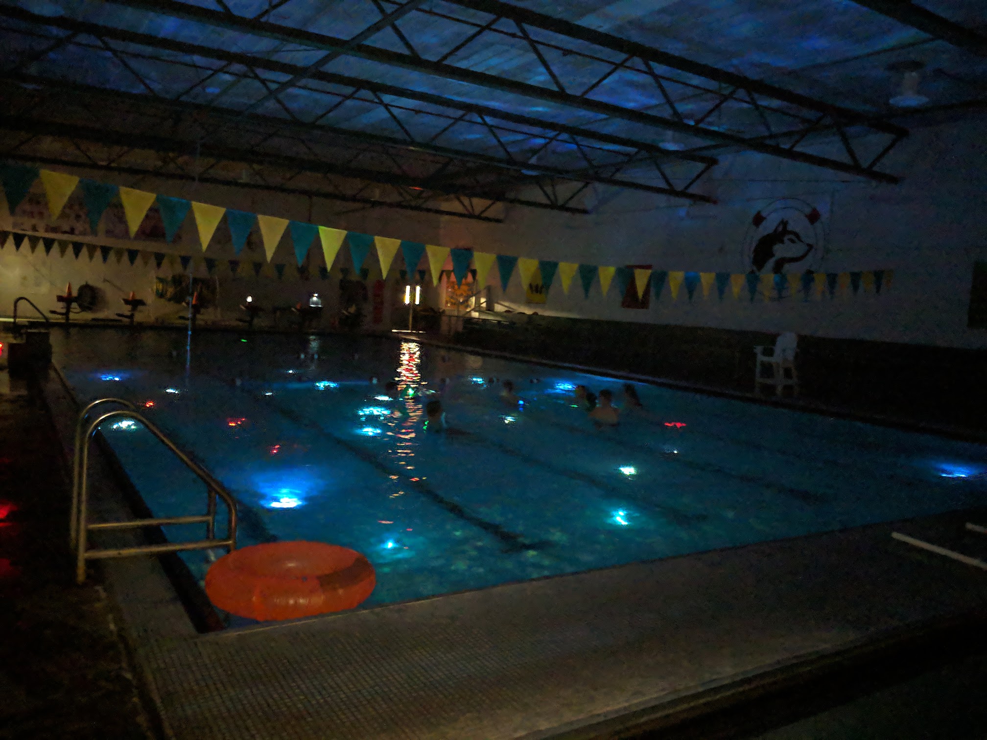 The swim instructors are students on the high school's swim team and most of them are fantastic. My son, who took swim lessons there every summer for years (even though we have lived out of state for the past 9 years), has always really enjoyed his lessons and instructors; each summer they encouraged him to join a swim team or swim club because he learned to swim like a fish! His favorite instructor was a swim team member named Oly, who taught him for several summers and was very, very good with him. Alas, Oly graduated a while back and moved on. Anyway, we love it there. Especially on nights when they lower the giant rope down so the kids can swing over the water and drop in! Admission price is only a couple dollars most nights; sometimes less. One warning: it does get VERY steamy warm in the pool area, so keep that in mind, especially if you plan to sit there as an observer. 👍