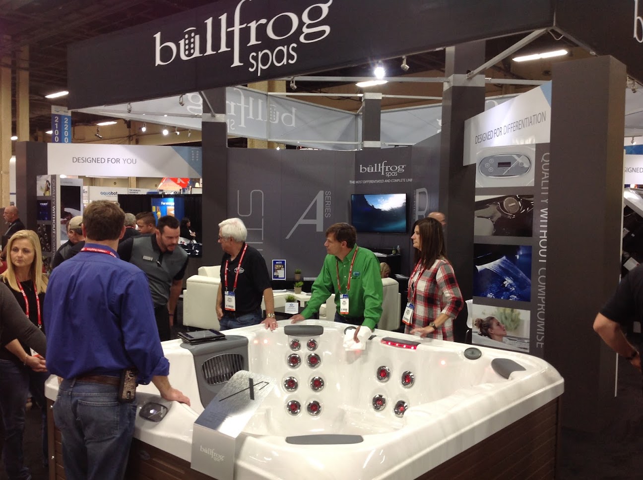 Specific pool temperatures for rental units or demonstration models are not publicly available. Hot tub temperatures are generally user-adjustable, typically ranging from 98-104°F (37-40°C).