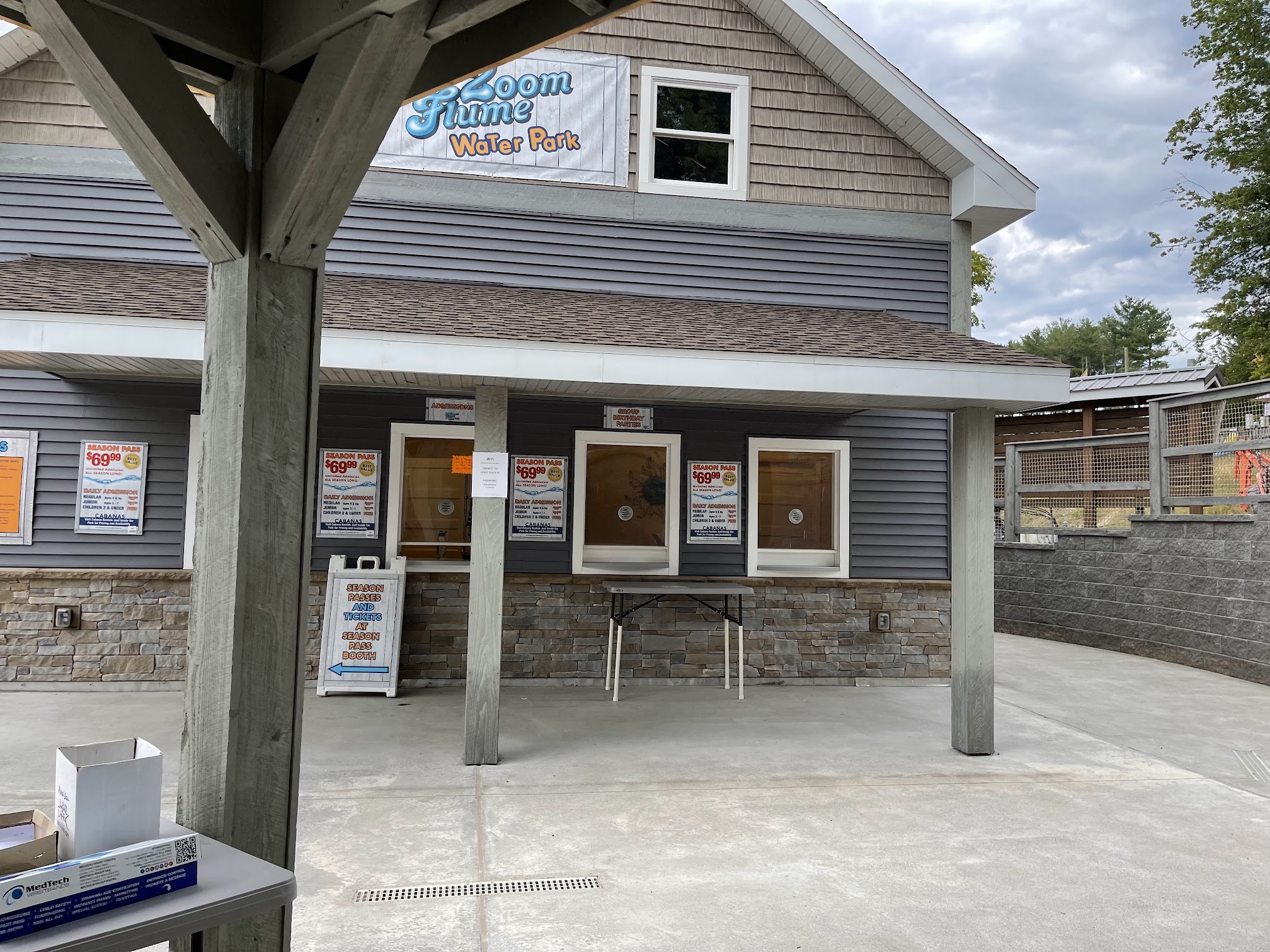 We went to Zoom Flume July 3rd which was a Thursday. We arrived at 10:15 and had no wait together in. They do check your bags on the way in. We had rented a cabana for the day. The cabana was the best. The locker is a very big locker and we were able to put our waters in the cooler that comes with the cabana. We had cabana 30. It was great. We had an amazing view. The kids area was directly below us. This was awesome as the kids spray water and with the breeze it felt like the cabana was air conditioned. The park itself was good. Grandson enjoyed all slides except for an orange slide that they both said hurt their backs. We did not wait in line more than 15 minutes, but most lines were under 5 minutes. I would go back but would not go without a cabana.