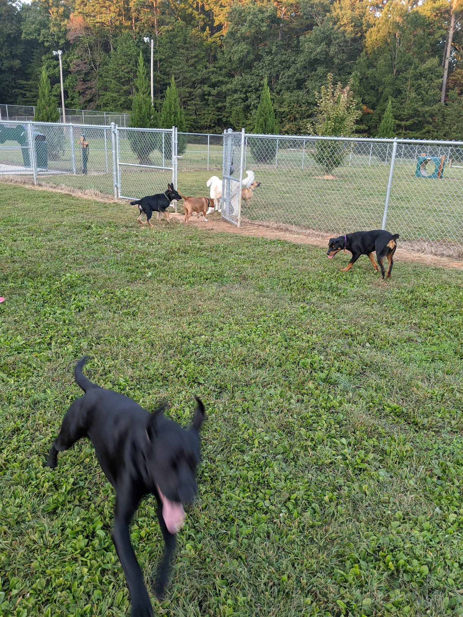 Love the dog park areas. It is really nice. Suggest signs for each entrance which size dogs since they have a couple of gates you can enter.... maybe they are posted & I just missed them Also wish people pick up after their dogs do their business. No excuse not to