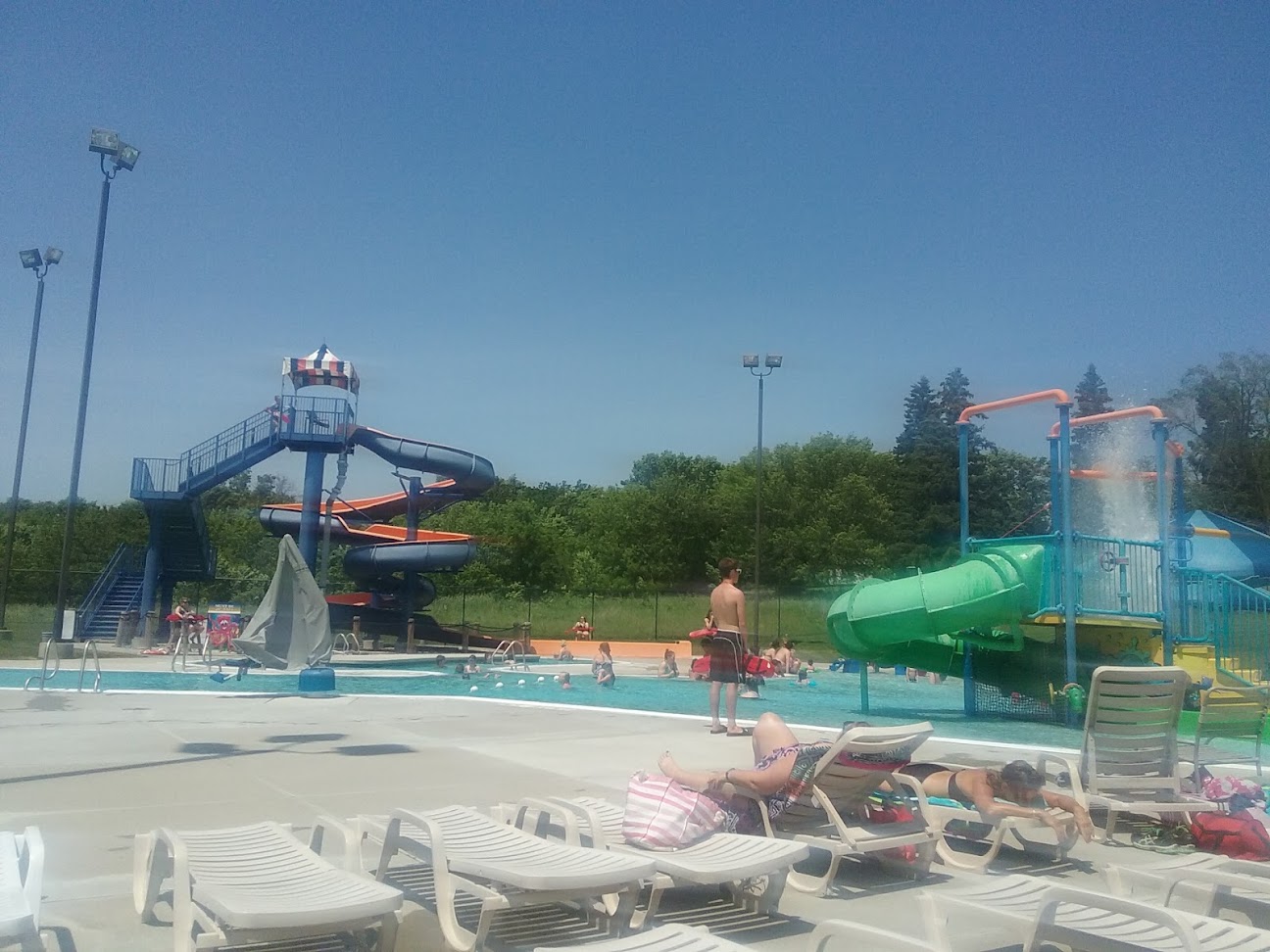 Multiple life gaurd on duty, 0 depth entry, 2 slides, water basketball hoops, high and low dive, lazy river. They have a family time. This is a pool you'd go to to with children to play, lap swimming is not an option. They offer swimming lessons in the summer through parks and rec. There is a parking lot, snack stand, and a play ground.