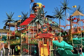 Small amusement park featuring roller coasters, water slides and other rides for all ages, plus a water park.