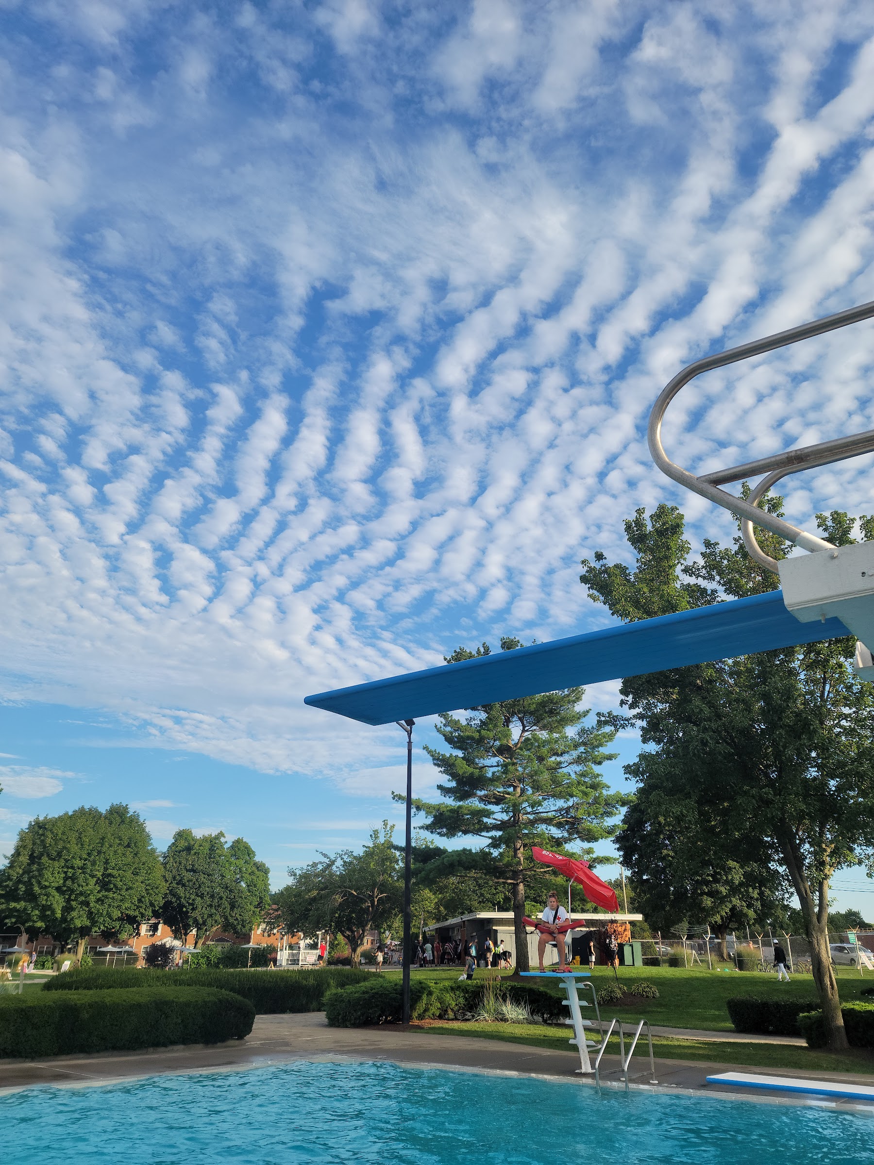 What are people saying (AI review summary)? The pool generally offers a pleasant experience with a quaint environment, three levels of diving boards, two kids' pools, a nice picnic area, and ample parking. Many appreciate the facility's setup, cleanliness, and attentive lifeguards. However, numerous issues significantly detract from the experience. The snack bar is widely criticized for being poorly run, with outrageous prices, long wait times (up to 45 minutes to order and another 45 to receive food), and difficulty hearing order calls due to a lack of a loudspeaker. Outside food is not allowed, and there are often insufficient tables on busy days. Food quality is described as bland and overpriced, with extra charges for standard ingredients. Operational problems include unannounced lap lane closures for swim meets, changing facilities being closed for cleaning before the facility's official closing time, often accompanied by rude staff interactions. Additionally, the kiddie pool's bottom is peeling in some areas, and there is a policy against little kids wearing life vests. The pool can also get extremely crowded during peak hot days.