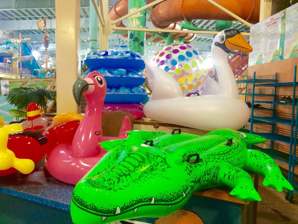 Alaskan indoor water park with a lazy river, slides and a wave pool.