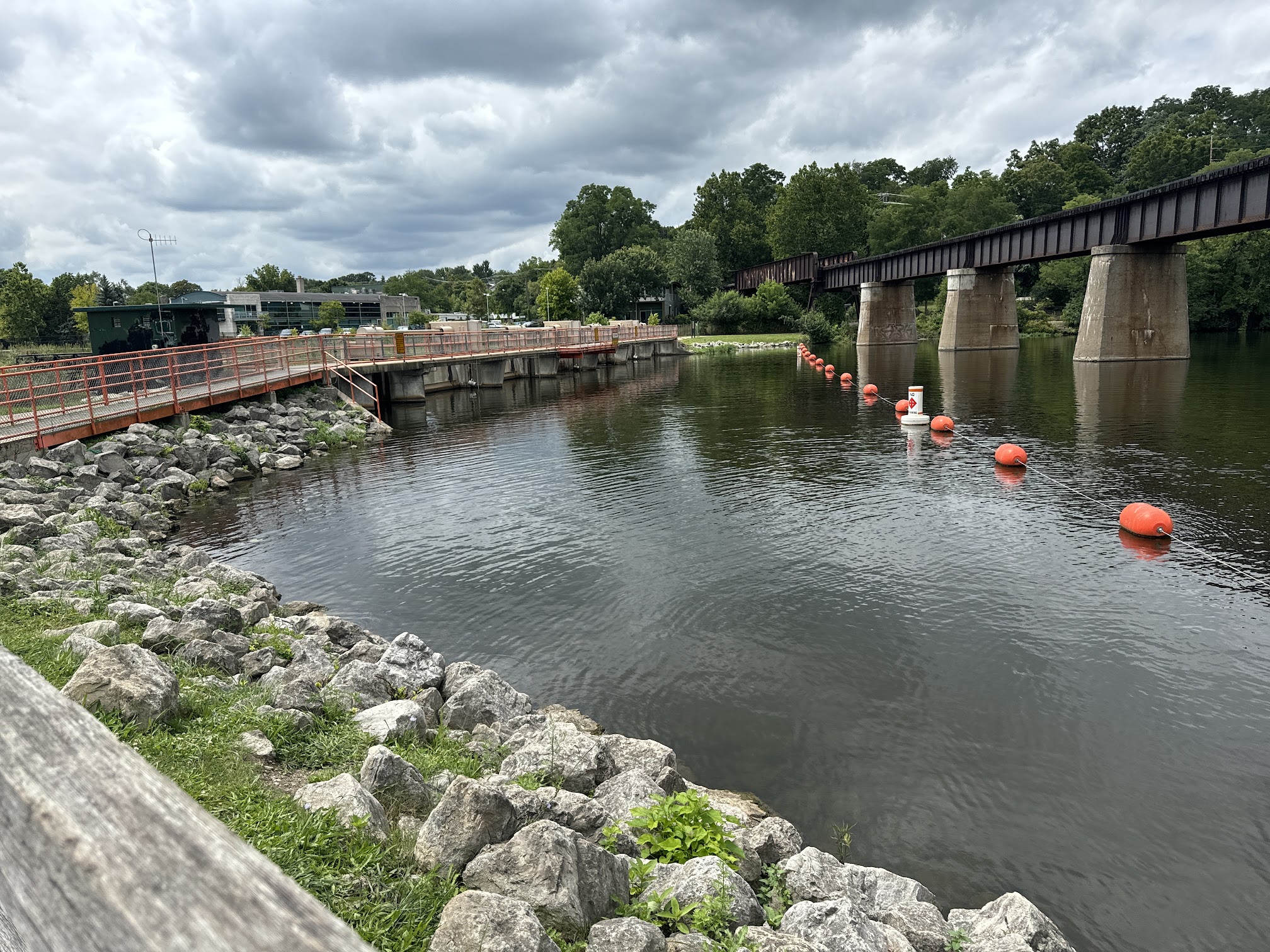 The Argo Cascades, located in Ann Arbor, Washtenaw County, MI, USA, is a popular recreational area within the Huron River system. It features a man-made bypass channel with a series of nine drops and pools, designed to allow kayakers, canoers, and tubers to navigate around the Argo Dam. This vibrant outdoor spot is ideal for paddling, tubing, and offers access to scenic walking and biking trails along the river, making it a favorite destination for various water and land-based activities.