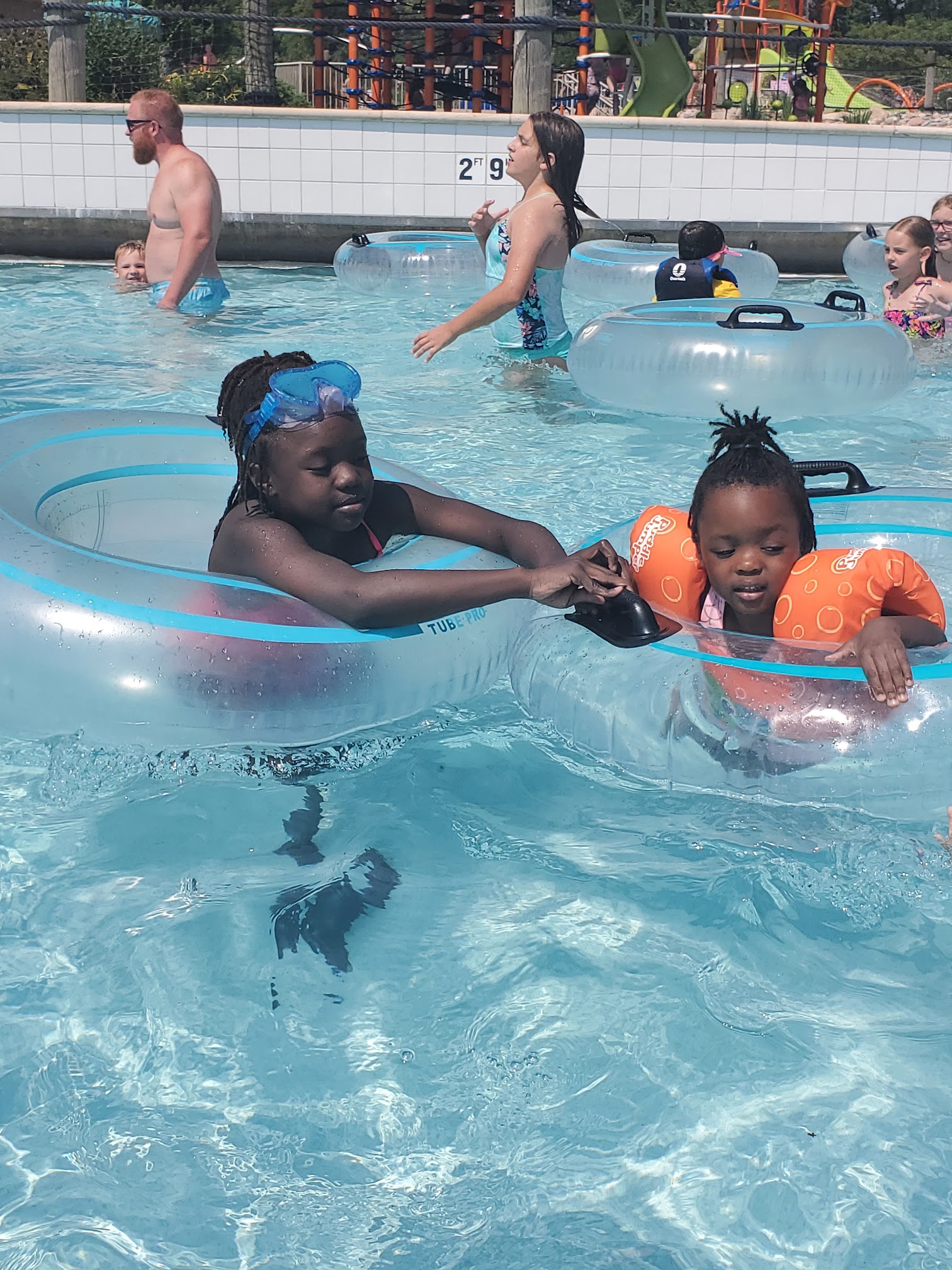 No signage to tell you to pay at store for tickets if not purchased on line, so we had to wait in line twice to enter the gate. Fun once we got in. From a safety perspective maybe everyone using the wave pool should use a flotation tube. Very crowded. Good that they had 5 lifeguards for wave pool though.