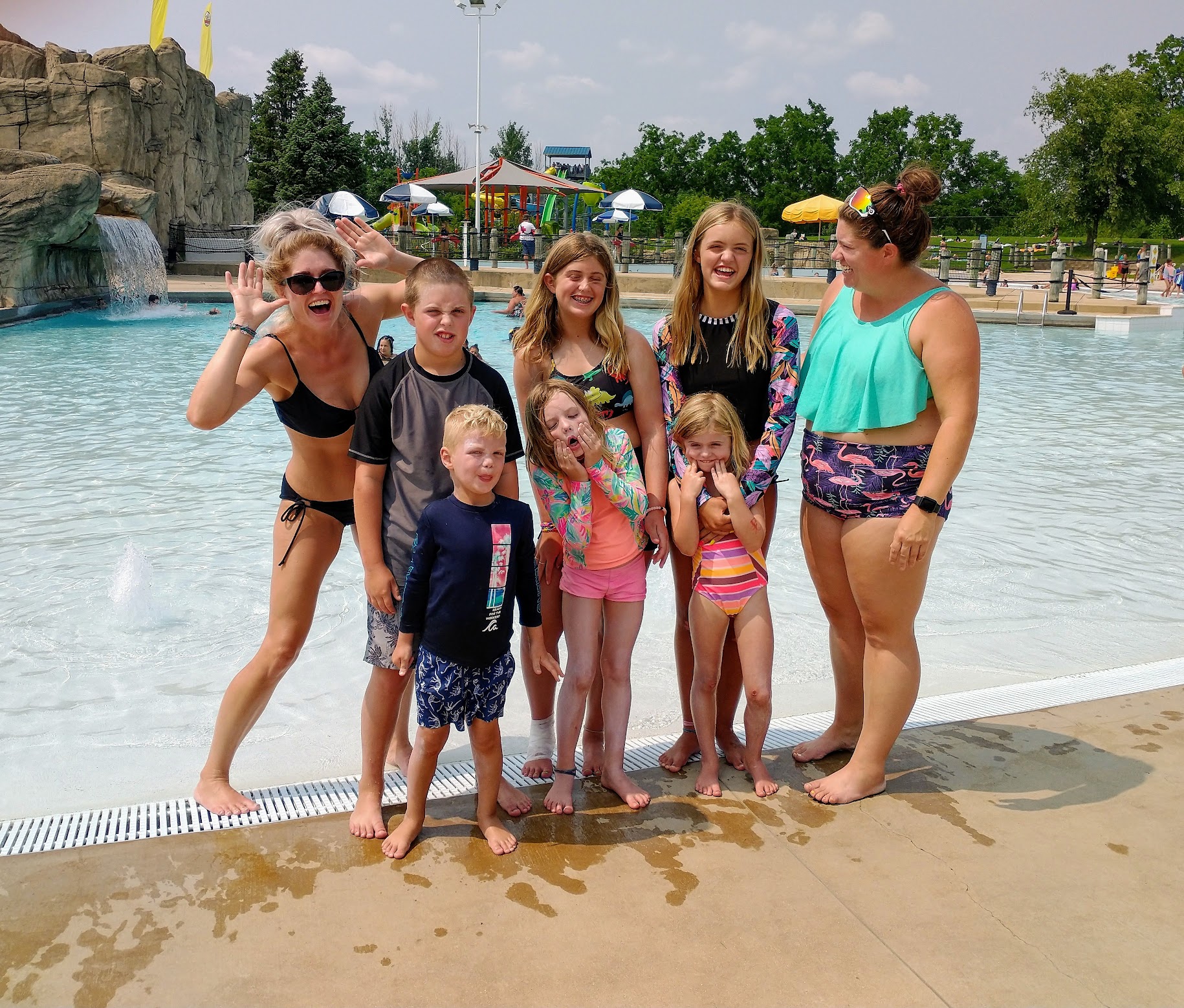 Perfect size all in one water park. It has a wave pool, lazy river, water slide, fountain play area. Area is not overly big that you get tired walking. Plenty of tress to stay under. No outside food inside but they have a cafe