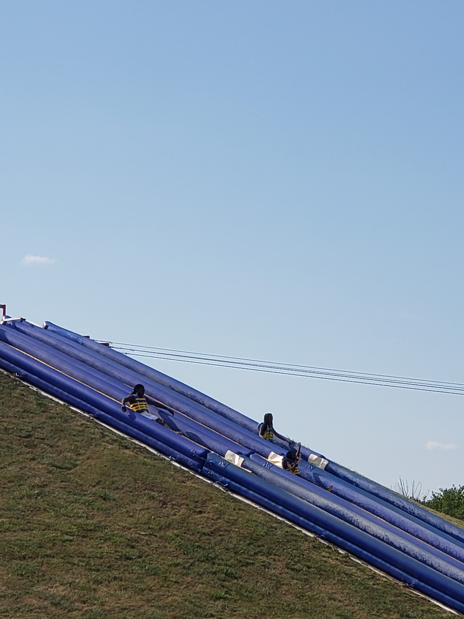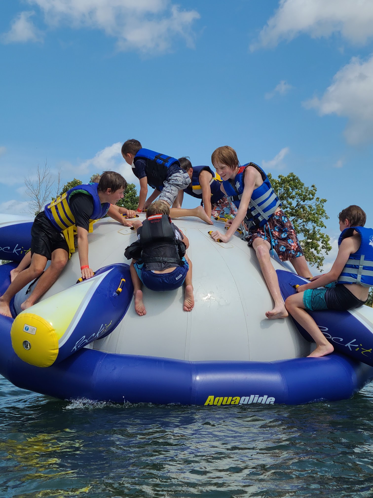 Visited on 7/13/25, it was a hot sunny day and they were busy. They open at 11:00, we were lined up at the gate with a few other cars and they let us in at 10:40. There is plenty of seating in the grassy area and a few big shade trees. You can bring in food and drinks. Check-in was quick, they take cards/tap payment and get your life jacket and send you in. Every employee we encountered was very pleasant and thankful. There is a bathroom/changing area with a bubbler. All of the inflatables and activities were up and running and in good condition. As it got busier the more popular inflatables were getting crowded, they did a decent job of managing the people that weren't following the rules. I wish it was cheaper but we knew the price going in, we stayed all day to try and get our money's worth. Overall it was a great experience for the family. 4/5 stars because of the high price, almost $200 for a family of four.
