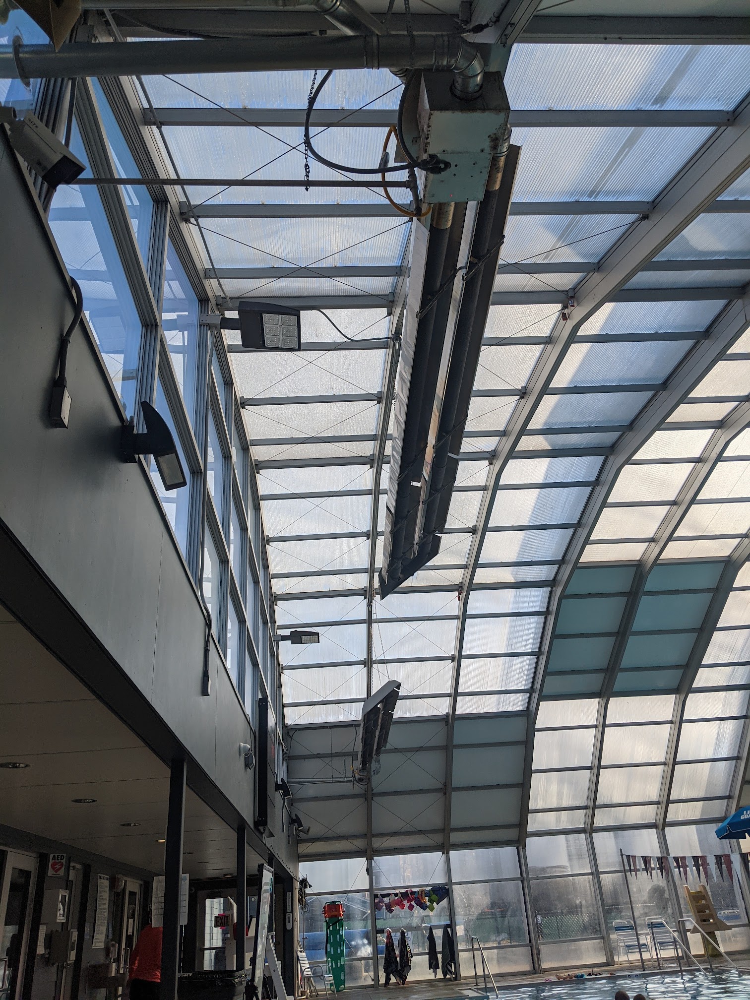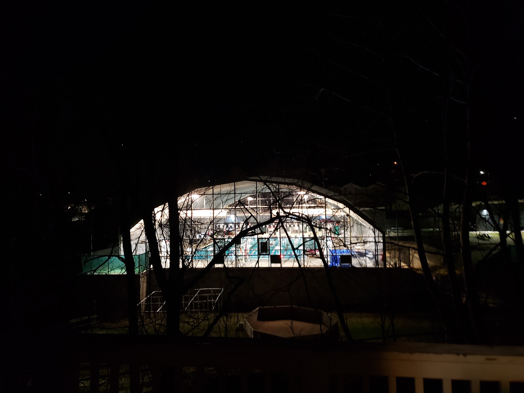 Turn your LED high bay lights off at night if you are going to put a glass enclosed pool in the middle of a residential neighborhood. This photo taken at 3 AM. Thanks!