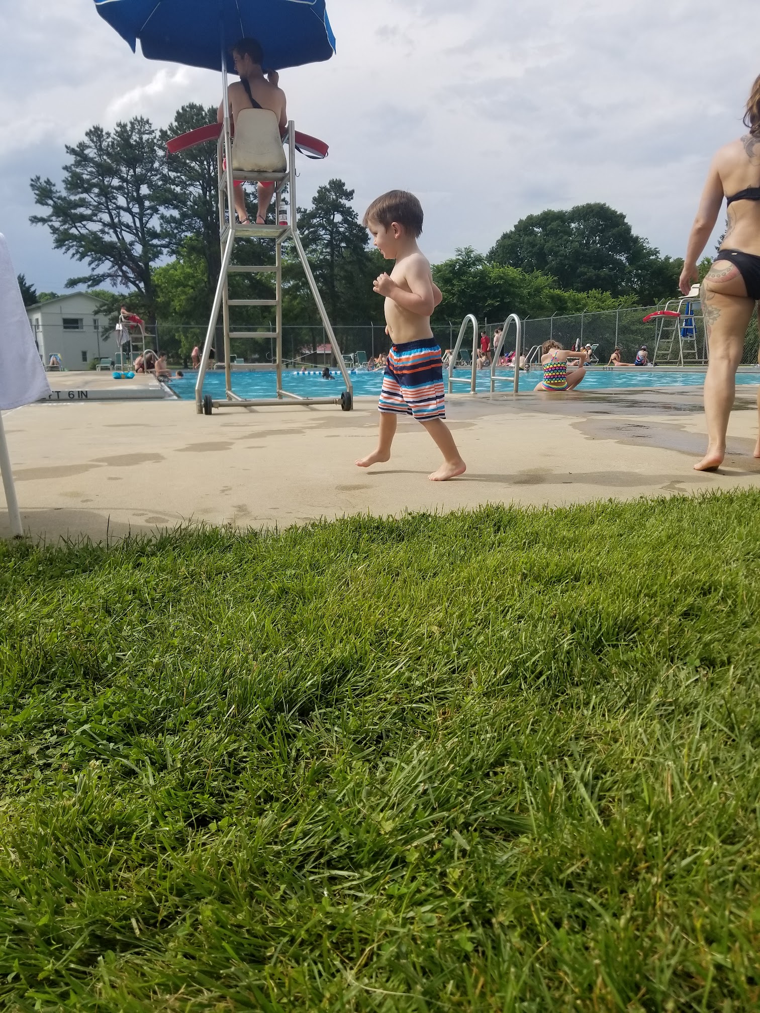 Even when the parking lot is super packed, you can still find a few blades of grass to spread out a few towels! They usually do not have any open chairs. No diving board but they do have a large deep end separate from little kids. No concessions but you can bring your own picnic basket and the snow cone truck comes around as well.