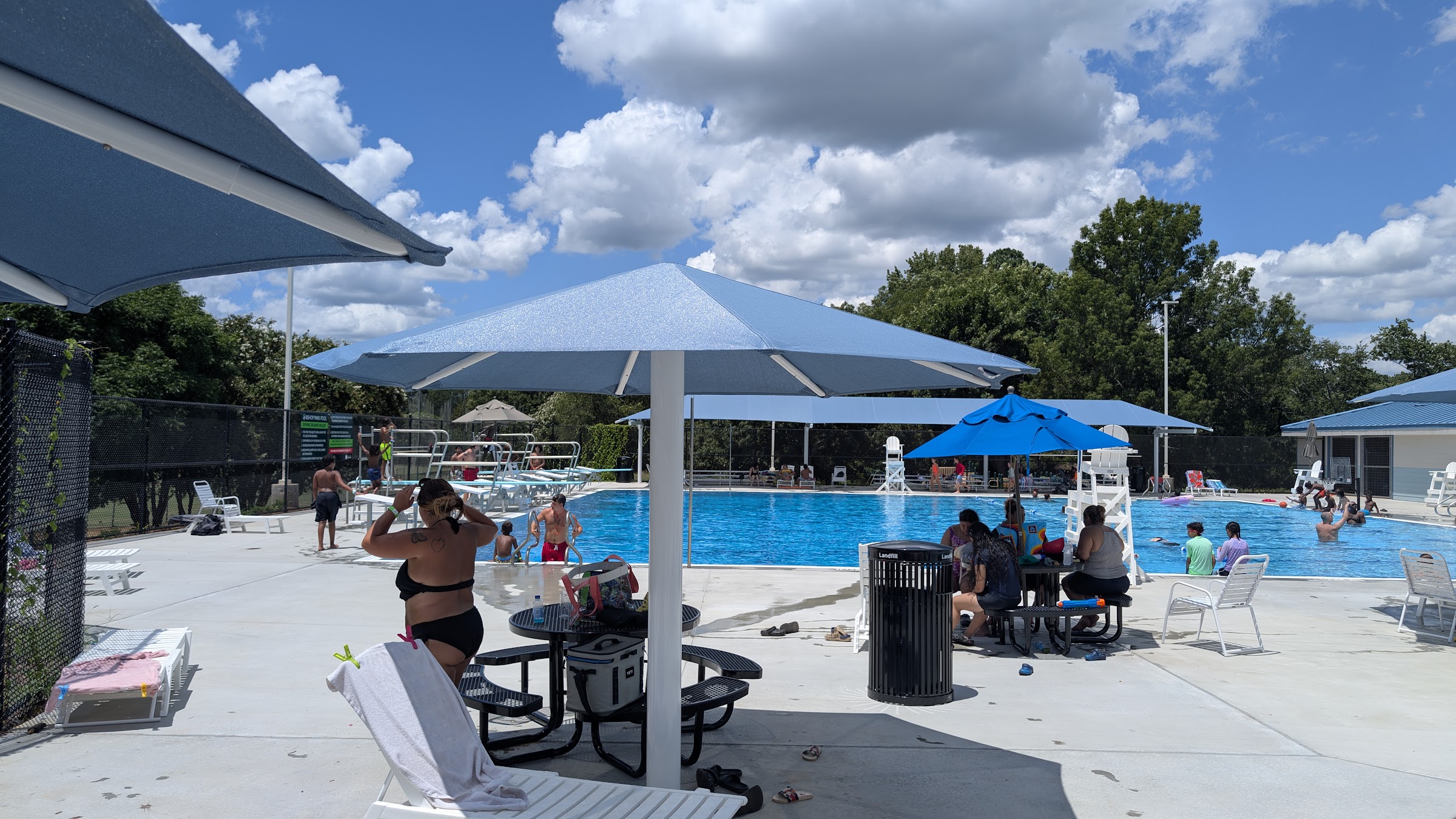 Was really nice, only 4 stars because I got accused of vaping. When we got there it was the waiting period, and there were no chairs right by each other so for half of the time leading up to the accusations I was lifting chairs. Then I got my towel out and put it on the chair, got my sunscreen out and put it on my boyfriend and I, then I got my book out and was reading while drinking my water bottle. To be transparent here, I definitely had outside food in my bag(but that rule does not seem to be highly enforced looking at the other people's tables) so I was eating some almonds when across the pool I see a lifeguard and a older woman looking at me, and I thought that was odd but I figured I was being paranoid. Then I see the lifeguard walk over to another lifeguard where they're looking over at me and pointing, to which at this point I thought they saw that I had outside food and I just figured I was going to get on to about it. Then, the lifeguard walks over to me and is like "you can't vape here" and that kind of caught me off guard because I thought it was going to be about my food. Keep in mind I dont vape, I really mean that, dont get me wrong I understand why someone might think that just because im 18 and teens do that but I've kind of prided myself on not being ratchet and vaping(I also run xc and I take my sport seriously enough to not ruin it with vaping). Anyways, I kind of was confused so I said "im not?" And she kind of looked at me and was like "okay well we've gotten several complaints that you were vaping" and at this point im kind of frustrated because I dont even know what MIGHT OF looked like a vape to understand how I got accused by several people, so I responded with "ma'am I promise you I really dont have a vape" and she looked like she didnt believe me and went "okay well if we get another complaint im going to have to ask you to leave". And that kind of ruined my day im not going to lie, I do not like being accused of being ratchet or doing things like vaping. Im very frustrated that she did not ask to see my bag or anything(not sure if they can but I would've gladly showed her even if it meant sacrificing my snacks haha). It kind of ruined the whole trip and half of the time all I could do is sit there and try to think of what looked like a vape, to be honest I think it was my water bottle, it has a spout and I was drinking it behind my book, but also my boyfriend said smoke comes out of vapes so im not really sure what made them think I had a vape. What made it more frustrating is that for the rest of the time I kept getting dirty looks from mother's and what felt like the lifeguards(not sure but I definitely caught some side eyes from them), AND whenever we were leaving I watched some kid let out a huge puff of smoke very clearly vaping and in my head I was kind of like "that's crazy this kid has had a vape and probably used it a couple times in the pool but no one went up to him, but I got told I would have to leave if they got just another COMPLAINT???" That was really frustrating and the lady I saw with the lifeguard wouldn't even look my way again(oh yeah i definitely gave her the occasional looks), but I don't understand how I got several prior to the lifeguard coming up to me but when I continued doing the exact same thing I had been doing I didnt get more complaints?? Anyways, other than that the facility was very nice and it seemed like the lifeguards made it fun for the little kids. Don't get me wrong I think this is a great place but that incident really just ruined the visit, I dont live around there and I had only really been twice before they redid it, so that was my first impression of that pool after like 4 years.