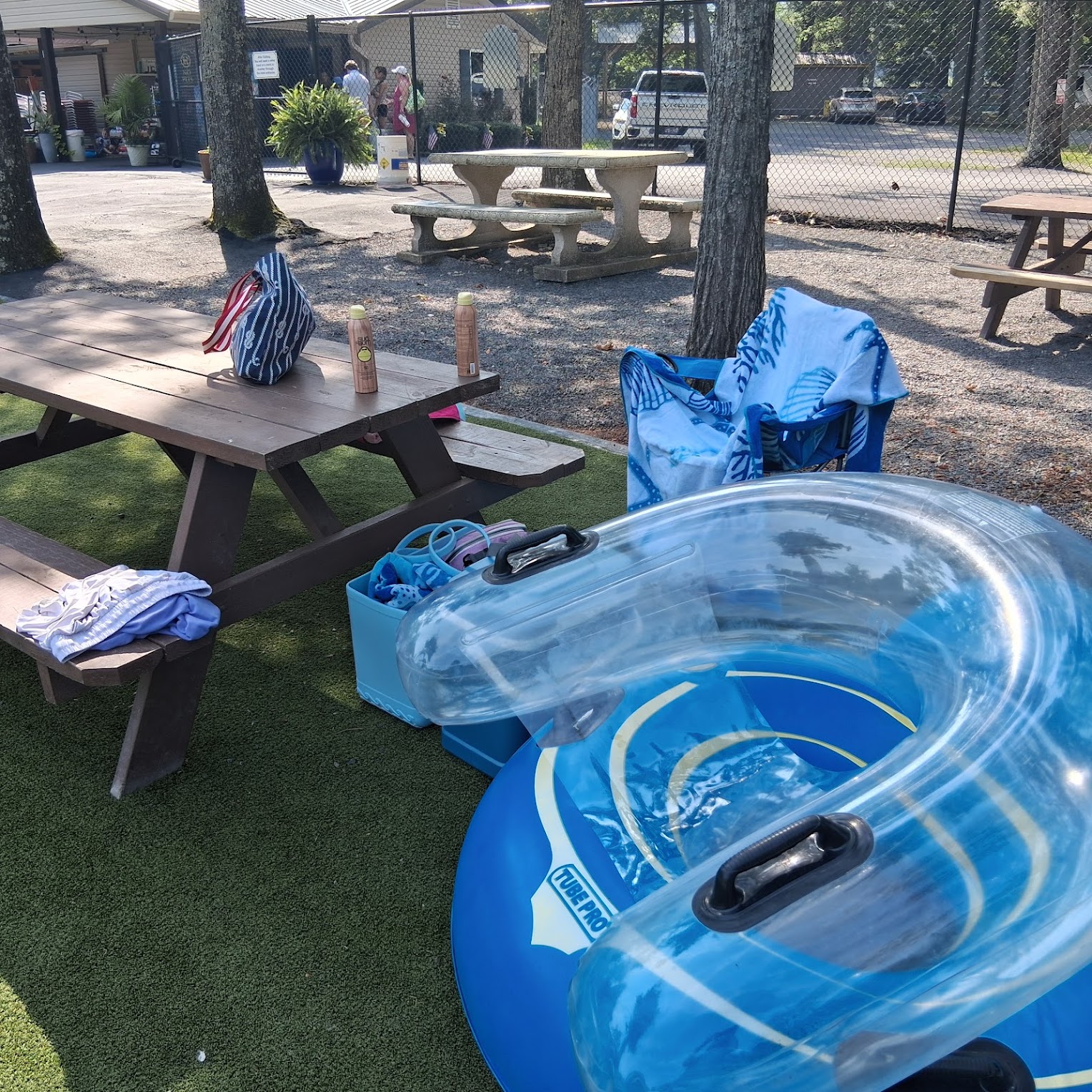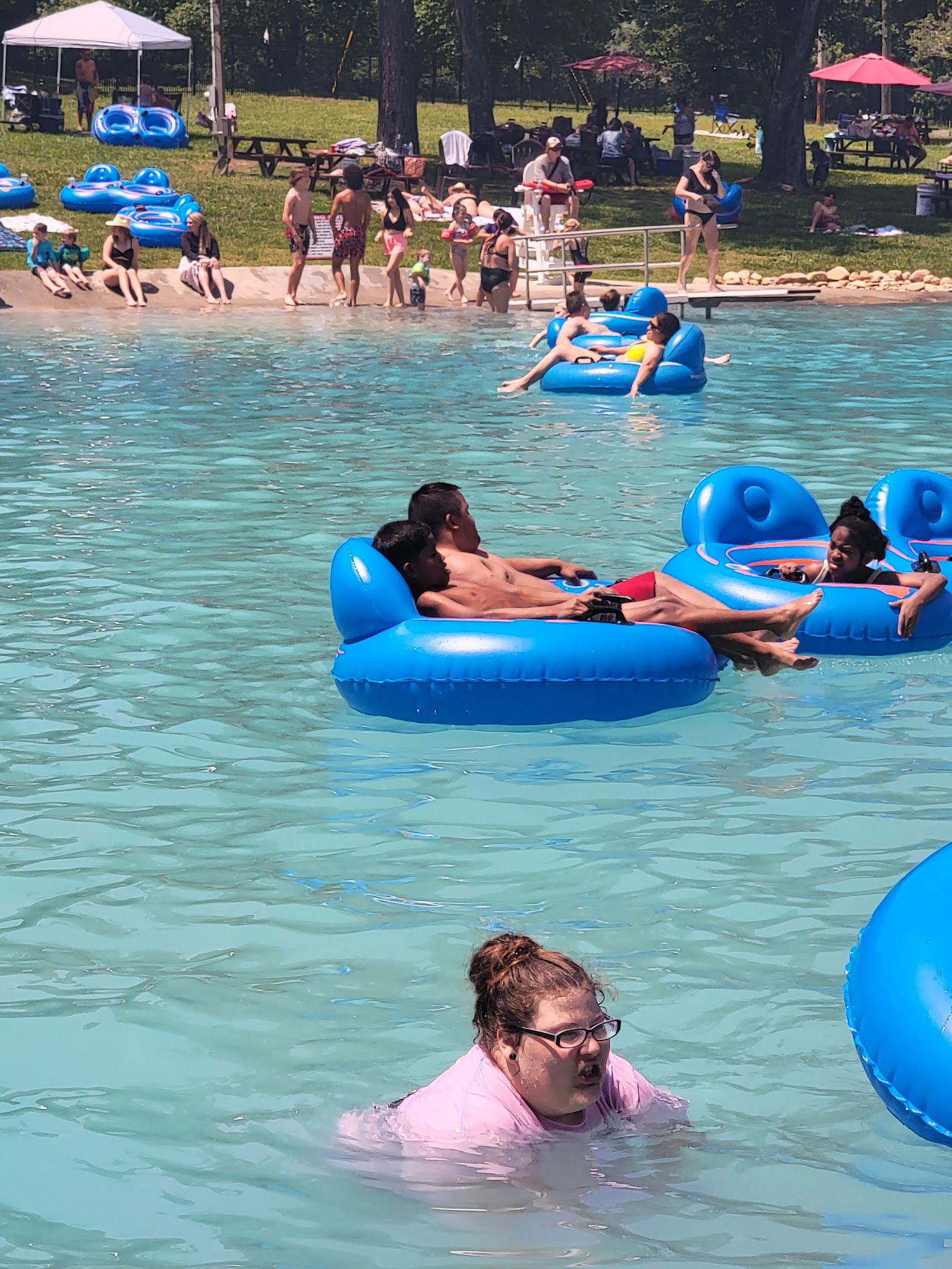 We took the hour and half drive to this lovely resort to spend the day! The Spring fed pool is cool (not cold) but really enjoyable. It is a large enough that many people can be there without feeling crowded. Love the zero entry sides, which also make good spots to rest when the middle is so deep. All in all the water is really refreshing and great to swim on a hot Summer day. There is plenty of seating, picnic tables with umbrellas, grassy areas where you can set up chairs and blankets and even a ton of grills if you want to cook out! If not there is a decent concession stand with burgers dogs, fried goodies, dole whip and snow cones. Prices are reasonable for food, and even for rentals (floats). The entry fee is also low and I didn’t mind the $3 cooler fee. Really a great day, in a family friendly place. I would definitely make the trip up here again.