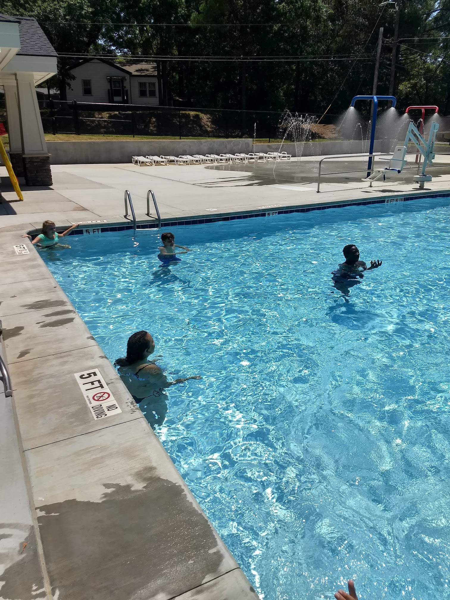 It is very crowded (one person was really smart by bringing their own chair.) but the person outside is nice. But you have to be there super early and the pool is a little small. It's fine when it first opens but I feel like you'll have a better time at Dillinger park if it was not crowded.