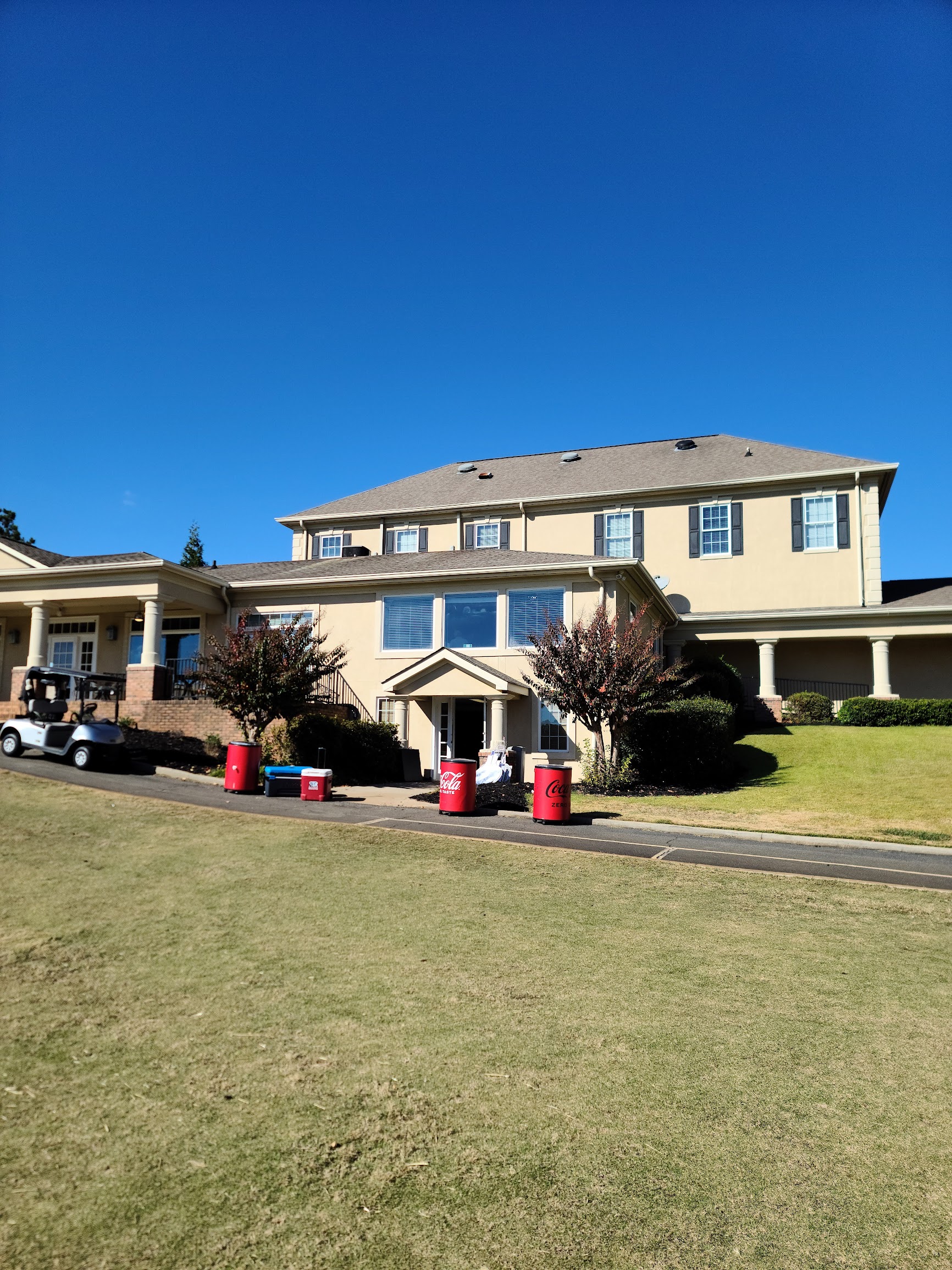 We are here for our daughter’s GSGA two day tournament. She’s been playing in tournaments for many years and has played countless courses. This course is by far the worst course we have ever experienced. The cart paths alone are a huge liability. Someone is going to get hurt driving over some of the extentive damage. The bunkers have visible pipes in them and I’ll let the attached pictures of the greens speak for themselves. I’m disappointed that GSGA chose this course for an important tournament that required qualification for. They may not have known it was in such bad shape but hopefully they take note…… because we will never play this course again. The worst part of this experience is during the tournament, the girls group had to stand in the fairway waiting to hit on the green due to the club’s maintenance man spraying down the green. We motioned to him that we were in a tournament and he told my husband, “no, ten minutes”. Really? It was shocking. I write this review for awareness for anyone paying to stay in a hotel for a tournament along with a tournament fee. We are so disappointed.