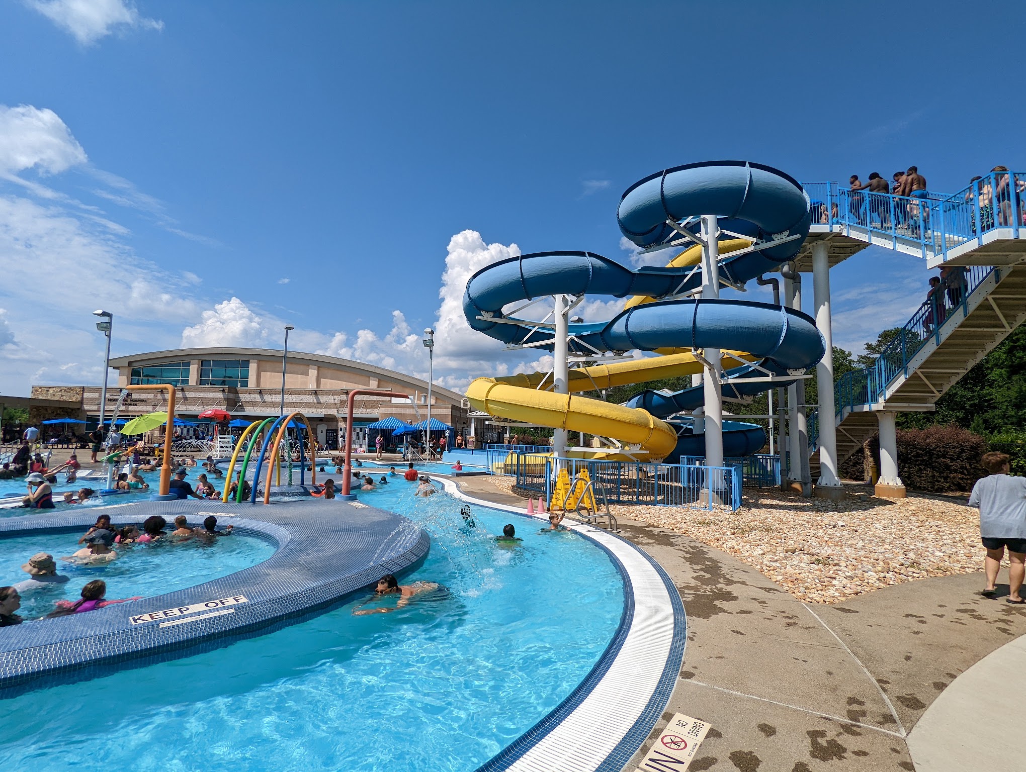 This place has gone downhill. Our family has had memberships for the past 3 years. Mold growth on the tiles, bathrooms needing pressure washing with bleach at the Oasis. Large piles of dog crap near the lazy river; we informed the lifeguard and they took care of it. Tiles missing, sharp areas throughout the lazy river, netting missing up on the splash area. Pool gets cloudy by 3pm because they exceed their people limits. My two year old got an ear infection requiring antibiotics after one of the visits this summer and I was very hesitant upon going back. The inside is Super clean at the competition pool, but the Oasis, nah...they have neglected it and its just gross. You can tell by the lack of care of the Oasis vs. the competition pool. We won't be renewing membership