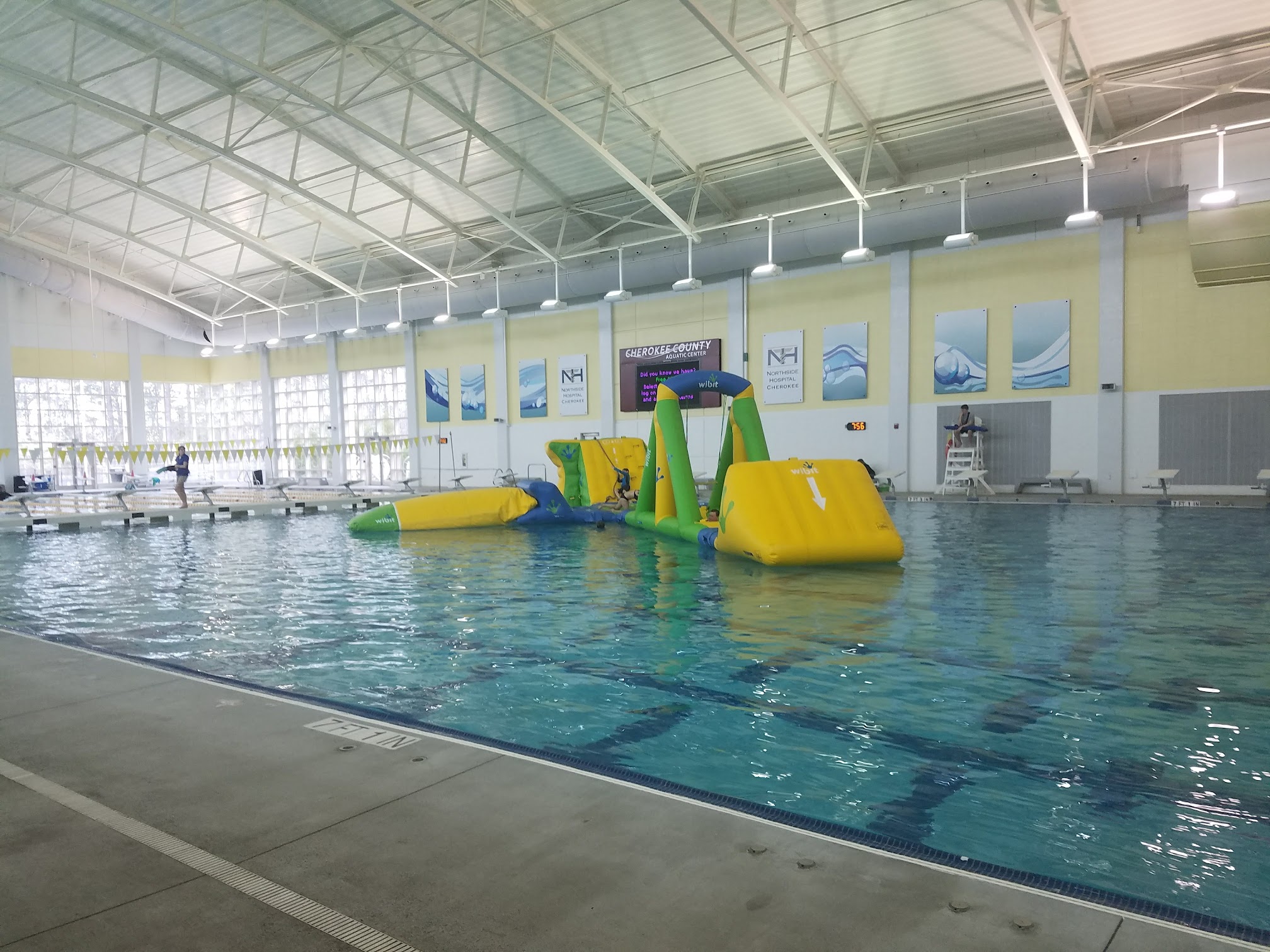 I really wanted to like this place, but honestly, probably won't be back. Giving 3 stars because the facility itself is really nice, clean, and has lots of things to do. The pricing is also pretty reasonable. The problem that I had was with how it was ran. Instead of rotating the life guards in shifts, every 50 minutes they pull everyone from the water and force a 10 minute "break." Now, I don't like leaving reviews that are rude and petty, but I have to be honest. I really feel like this could be managed better. I've never seen a place do this. Any water park or aquatic center I've been to always just rotated the life guards and people keep playing and going about their day without being interrupted. Every time my kid would be in the middle of having fun, I'd have to pull him from the water and force a break, which anyone with a toddler knows how rough that is. I understand that safety is a big deal, and I'm not taking that lightly. But, no other place does this. It's super inconvenient for the parents and frustrating for the kids. Also, the place was super busy, and there weren't enough chairs for everyone. So, we had to sit on the hot concrete every time we were pulled from the water, which really sucked. Isn't there a better way this could be done?