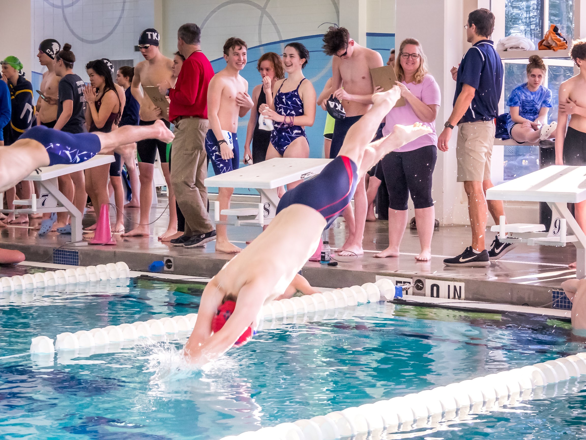 The competition pool typically maintains a temperature between 78-80°F, while the instructional/therapy pool is heated to a warmer 86-88°F for comfort and therapeutic benefits.