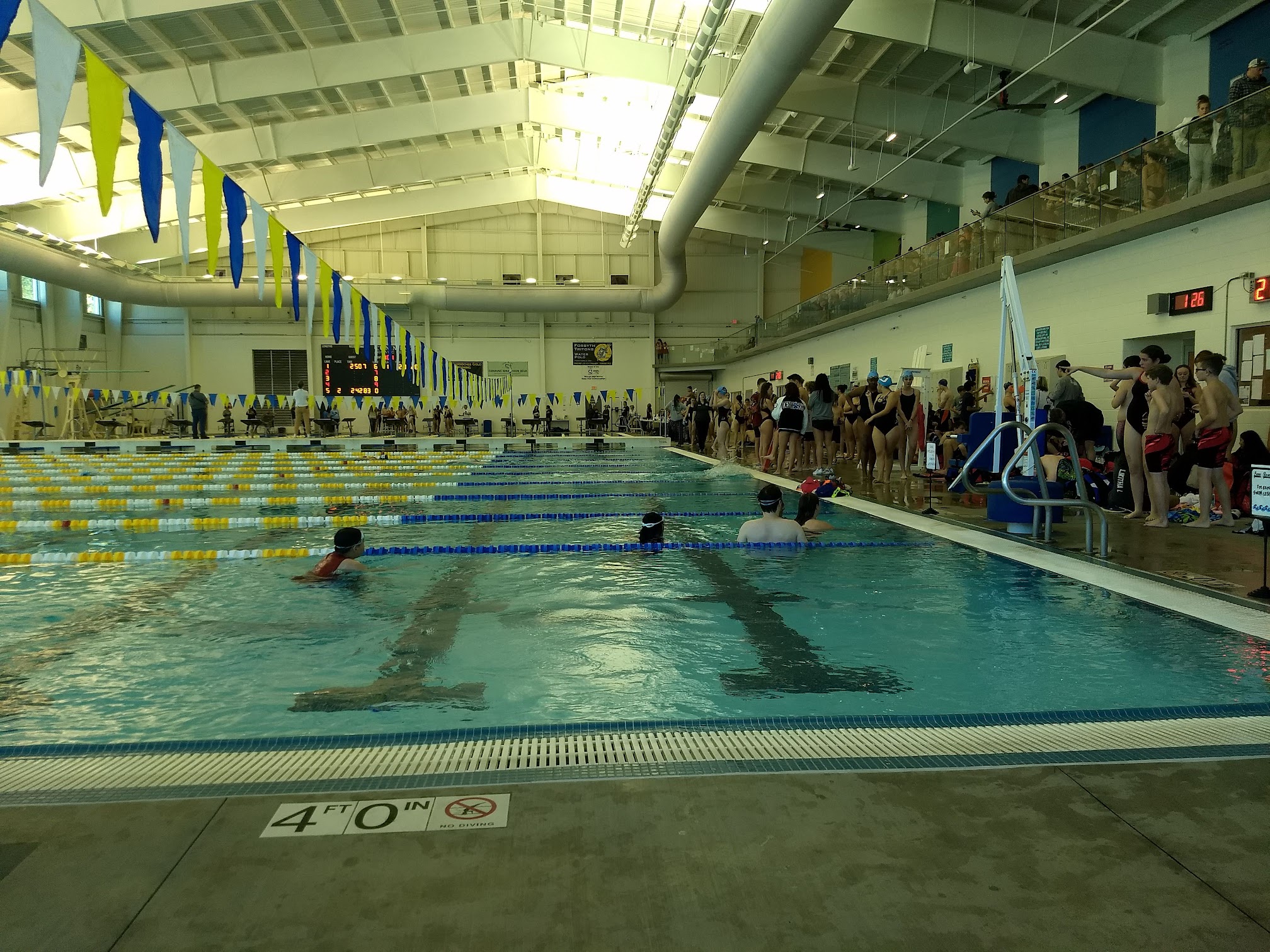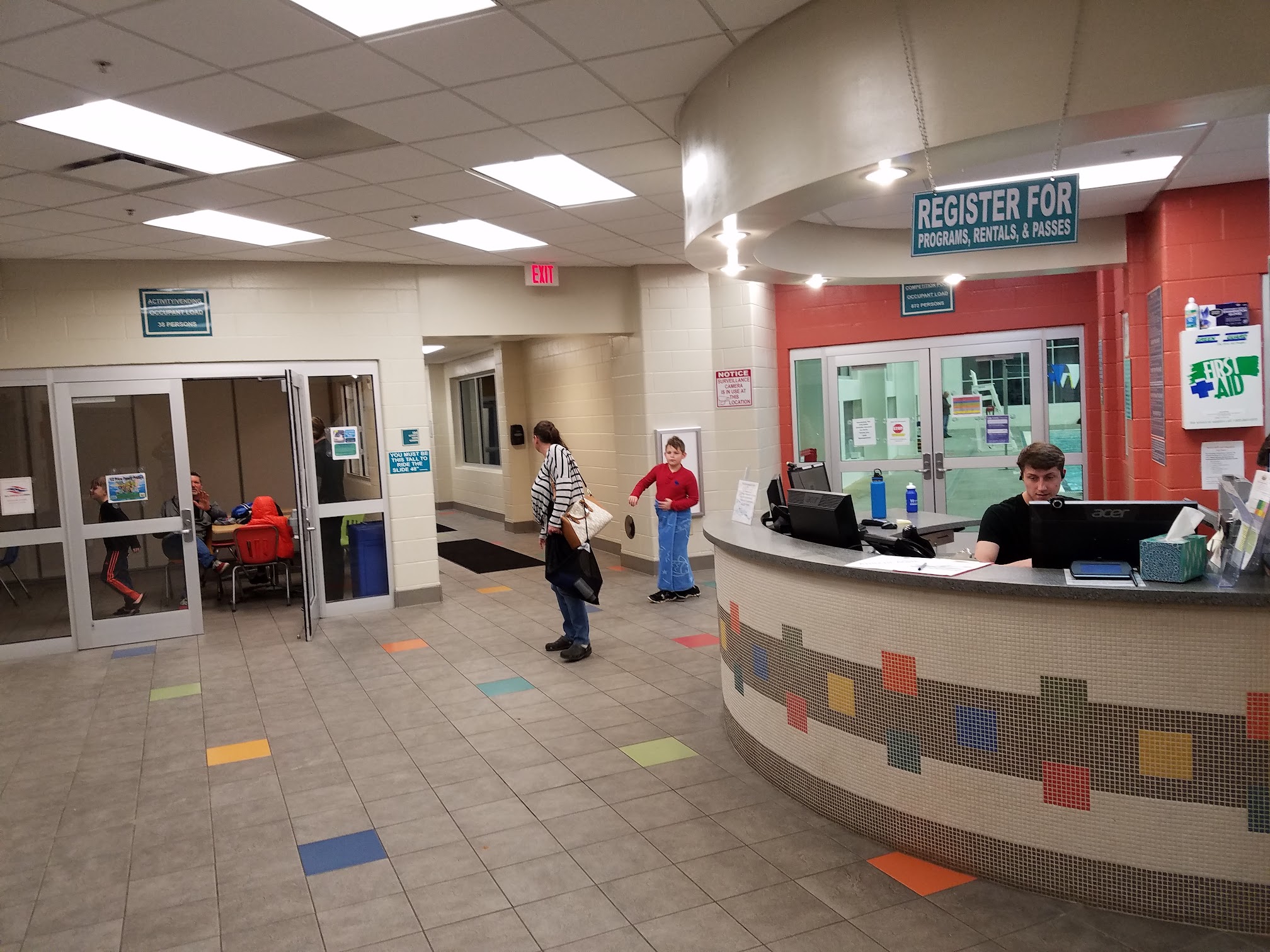 I was there with our Girl Scout troop. We rented the whole facility for two hours from 7-9p.m. We have done this four years in a row. We have been allowed floats in the pool every year. We also asked if there had been any changes to the rules a month before the event.This year we were not allowed floats. Some of the girls brought floats instead of there life jackets. It was kind of a big deal when trying to entertain 24 little girls. On top of all of that, the jets for the lazy river were not working properly. They had us get out of the water and go to the inside pool an hour after we arrived. Due to thunder. That would have been fine but the chemicals in the indoor pool were so strong that several people had pretty bad reactions. ( burning eyes and faces) The girls work really hard for four months out of the year selling cookies in order to afford their celebration to be held at the aquatic center. I have a feeling we will be rethinking next year's event.