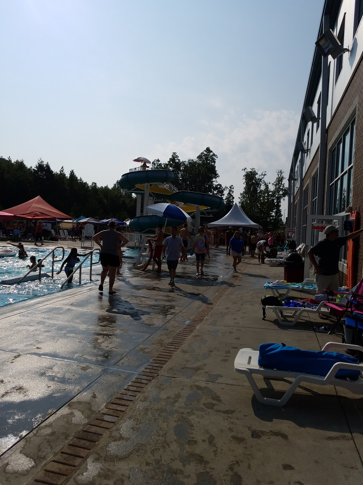 My family enjoys the outdoor pool in the summer. My review is due to the blind spots from the lifeguards' vantage points as well as some of the lifeguards' lack of attention to the pool on the party side of the lazy river. There also should not be 1 lifeguard for the bottom of the slide, lazy river, and deck. It doesn't follow the 10/20 rule.