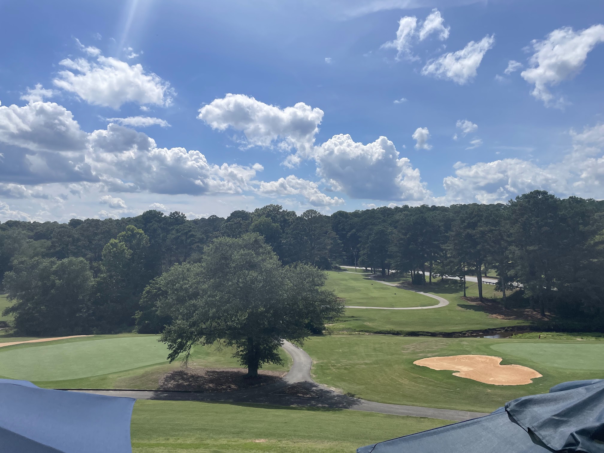 I want to first say that I attended a wedding here as a guest and not as someone who had to go through the process of hosting, however I do have experience in working at country clubs and working many weddings through that position. I was awarded the opportunity to see the setup a little bit early before the rest of the guests arrived. The club house could use a face-lift, perhaps a fresh coat of paint, but that's a personal opinion. The ceremony was to start at 4:30 with music stating at 4 pm. The bride was informed that tee times would conclude before then. I saw some member teeing off still around 3 something, but typically, the last tee times are around 4, but it's not my position. Upon arrival around 3, I did not see many waitstaff. Chairs were set up for the ceremony, but only in a way where someone was only instructed to put the chairs out. We were asked by a family member to adjust chairs (rows were uneven, unevenly spaced apart, and the number of chairs per row was not parallel). All the while, one waitstaff was wiping down the cushion of the chairs. The family member asked about getting extra chairs for the string quartet, and they were unable to accommodate them. We left things be and headed to the club house as weather warmed up. Inside, there was one waitstaff stocking up the barback (dry wedding, so only cups and carafes). There were still buckets and other items strewn about by the time we headed back down to the reception at 3:55. The venue knows that there was a hole in their wisteria trellis, but their solution was to throw a sun bleached faux Ivy covered trellis on top. The ceremony went well, and the background was beautiful with the correct arch the couple picked out. We headed back towards the club house for reception, and the greens were beautiful. They could have cleaned the exterior a little bit for spiderwebs and trash on the back patio. Overall, it was a nice cocktail reception area. All the buckets randomly placed were cleaned up in time. When it was time, dinner service ran well without a hitch. The decor from previous wedding additions were beautiful. One of the oddest things to me is the lack of refrigeration for wedding cakes if this is a wedding venue.