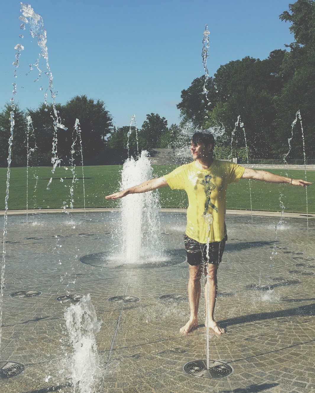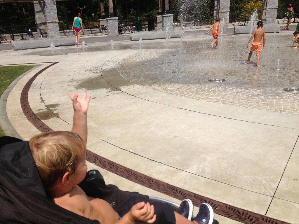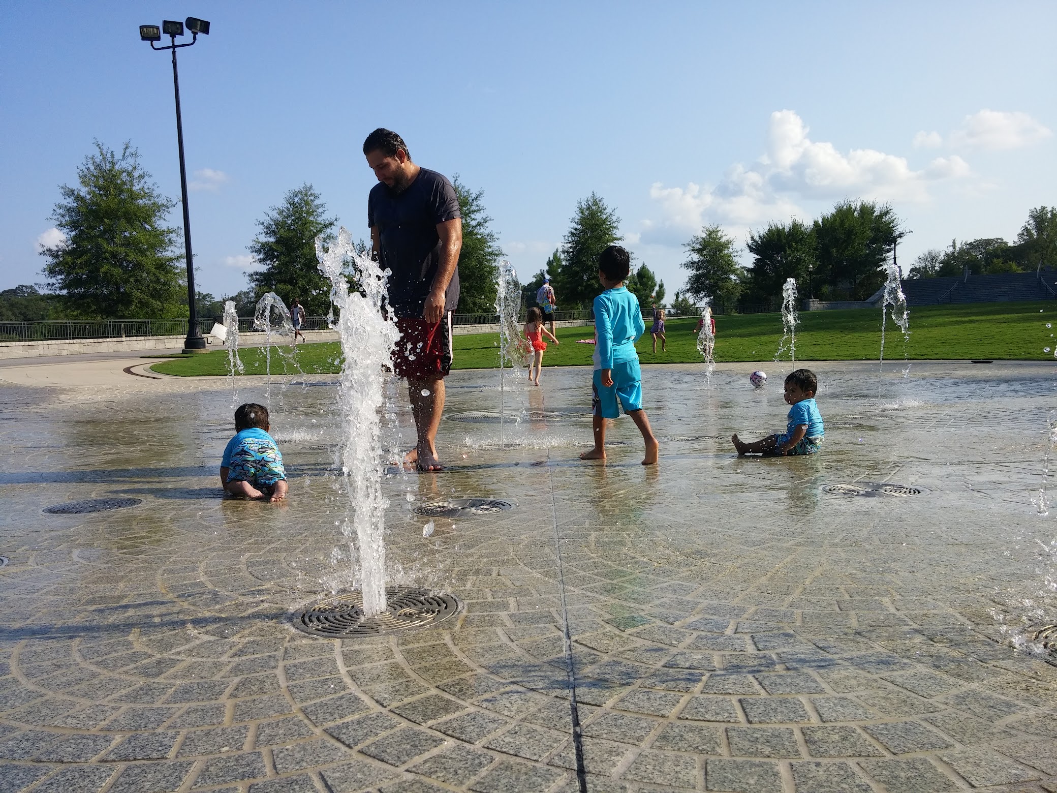 There weren't a lot of people there on a Tuesday morning around 11am. You have to park at the botanical gardens parking structure. We stayed for a little over an hour and parking cost $3. My 3 and 5 year old really enjoyed the fountain and the height of the fountains would change to keep them entertained. There is a restroom close by and there are a few tables and chairs under a shaded awning. An inexpensive short activity during the hot summer.