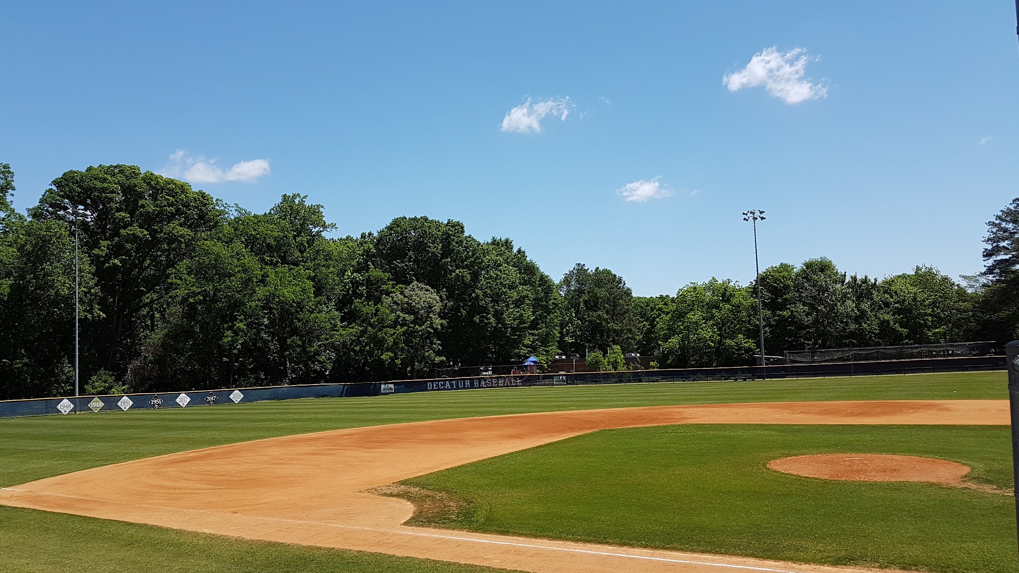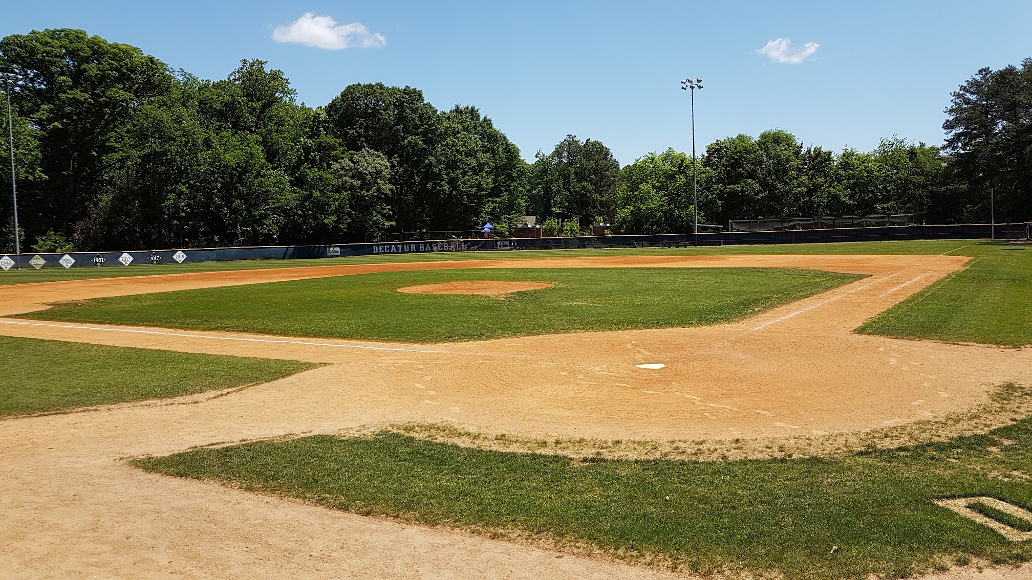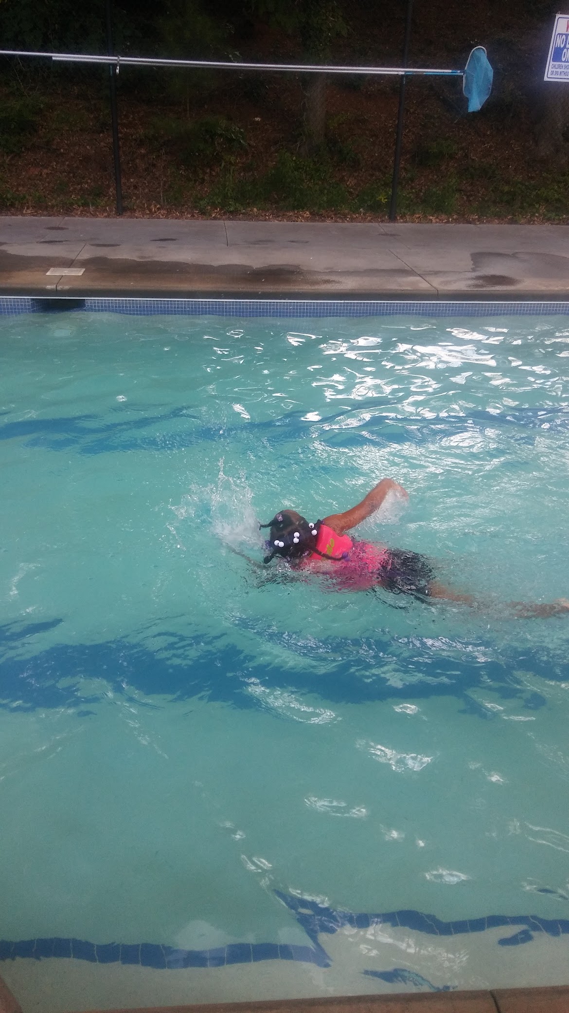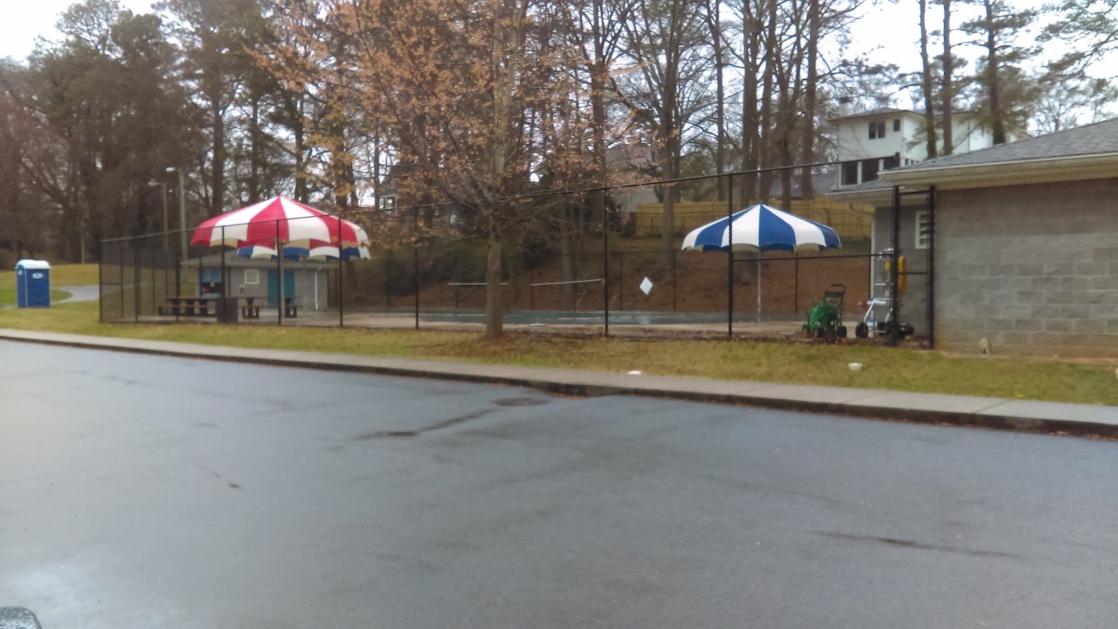 Secluded Decatur public swim club. Very nice. Membership or fee is required. It appears to cater mostly to parents of smaller children. There are three lap lanes that appear to be 25 yards in length. It feels shorter than a usual outdoor lap lane, but can't say for sure. I would guess that about half of the water area is devoted to less than 3 feet of water depth. One can rent the pool for birthday parties, with lifeguard staffing for a very reasonable price.