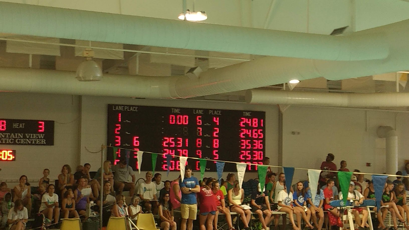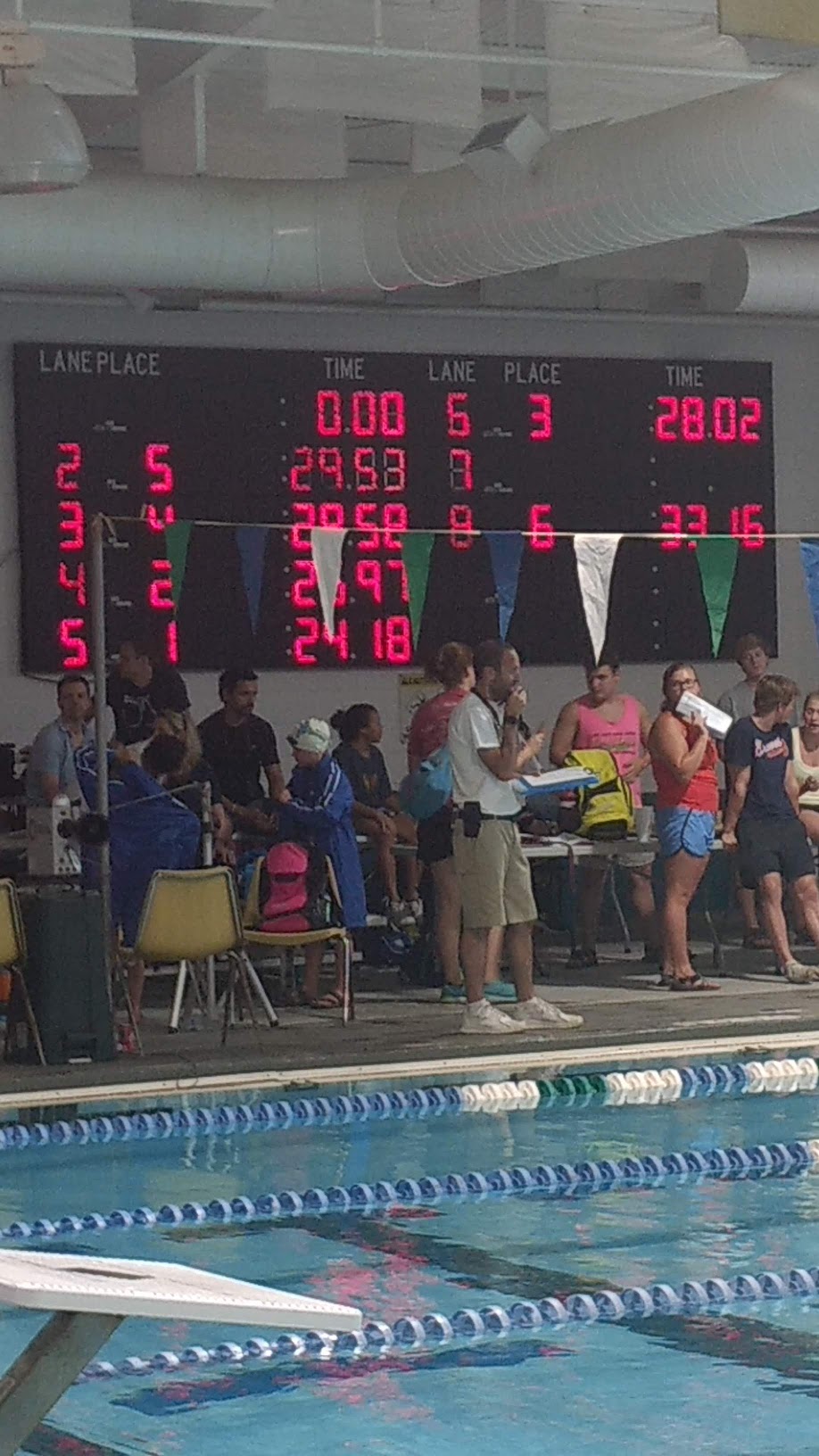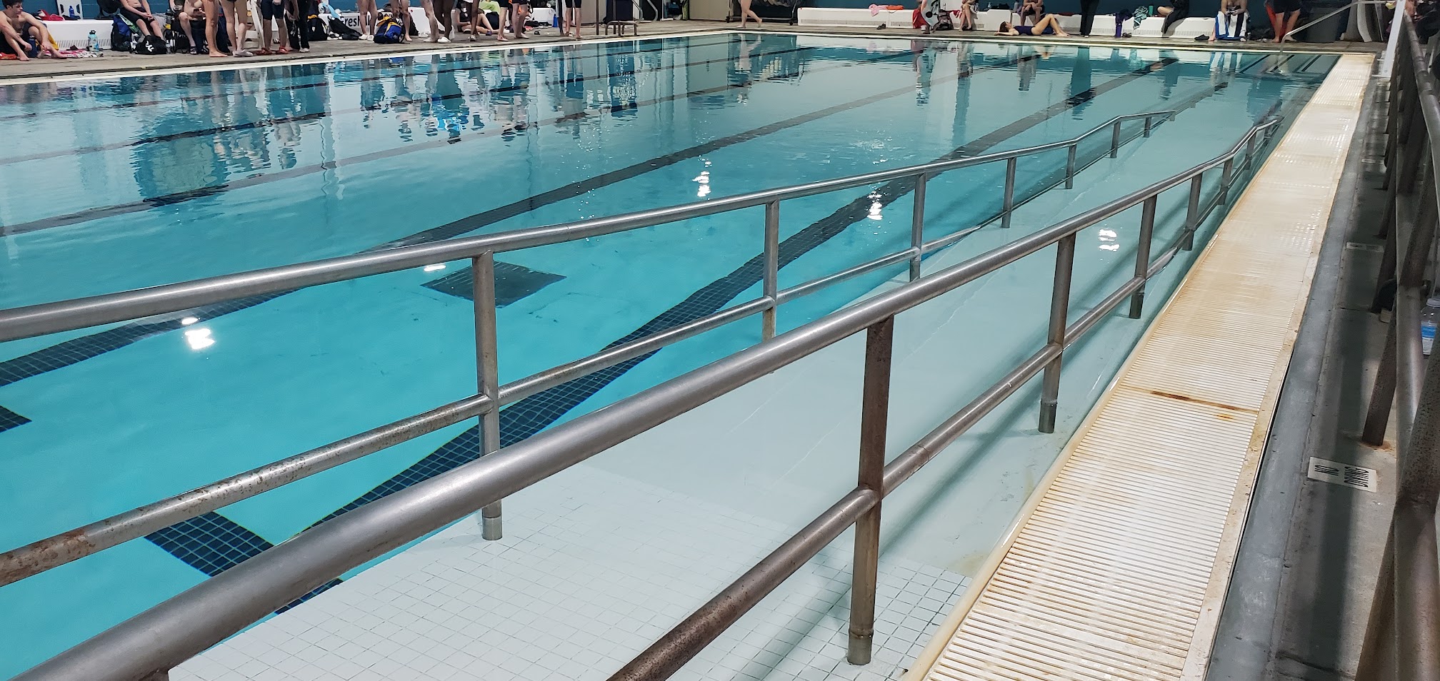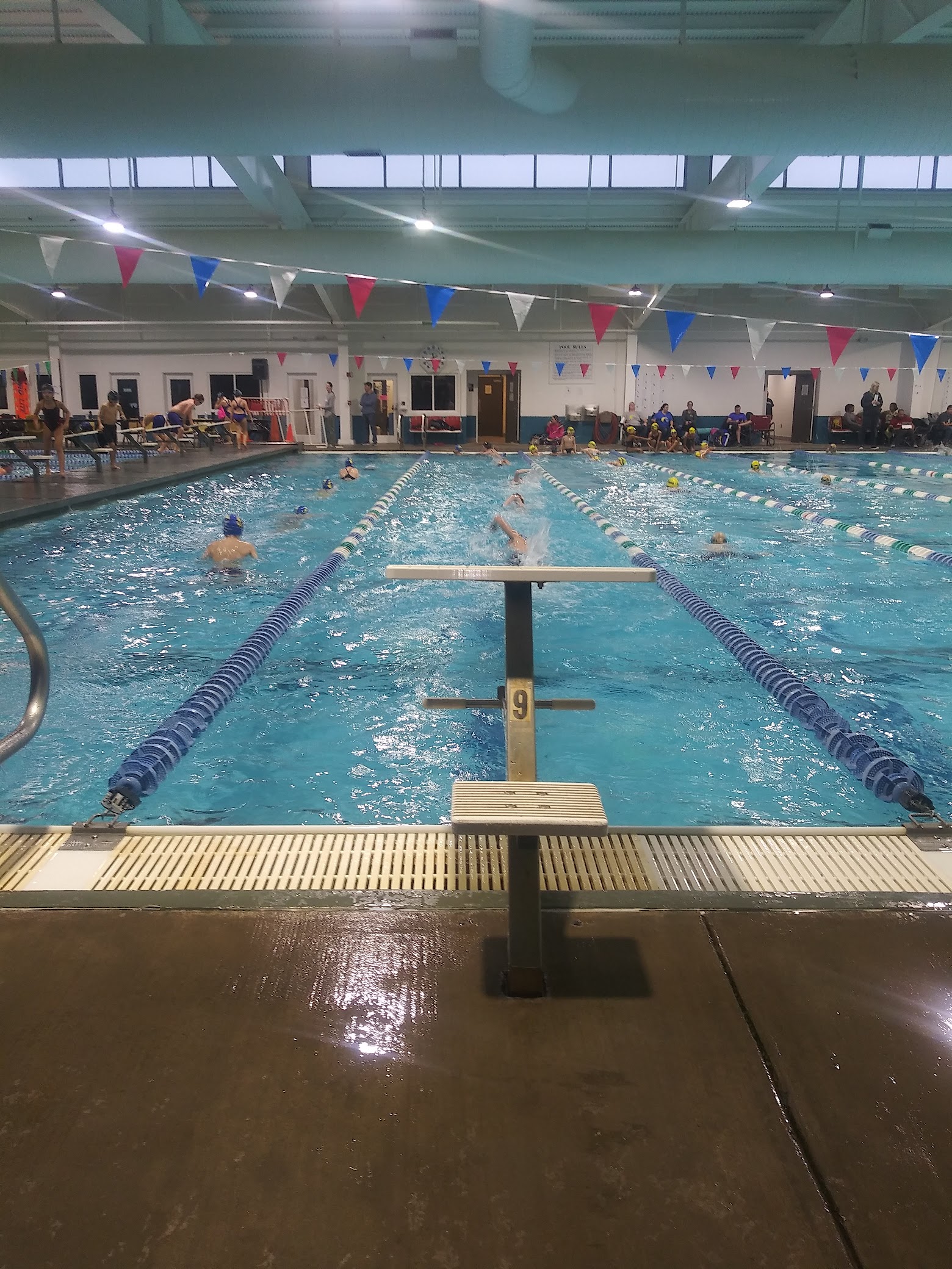 Huge aquatic center, 22 lanes. I've come here for several high school swim meets and the pool, lane markers, and starting blocks are all in excellent, well maintained shape. My two complaints are that the restrooms/locker rooms look perpetually dirty. I'm sure they're not, but the constant water on the floor from the swimmers combined with the age of the floor/lockers/stalls make them look less than clean. Also, the amount of chlorine in the air is enough to burn my eyes and singe my nose. I'm not able to smell properly for several hours after spending an entire meet here.