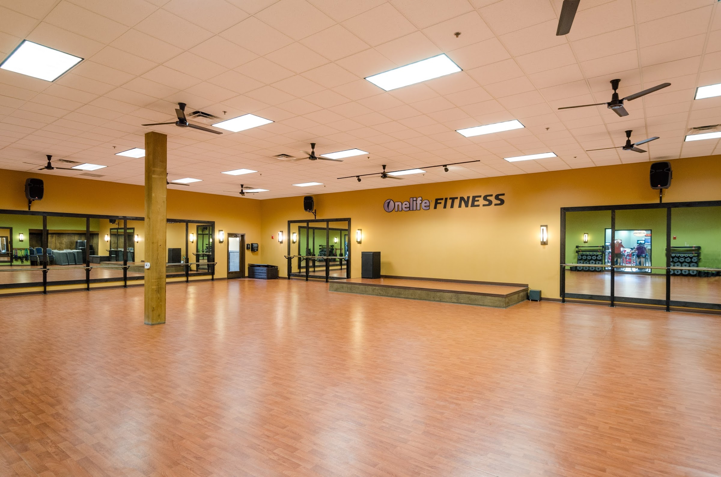 Chain fitness center inside North Farm Market Place Shopping Center with an in-house movie theater, a saltwater pool, and a tanning salon.