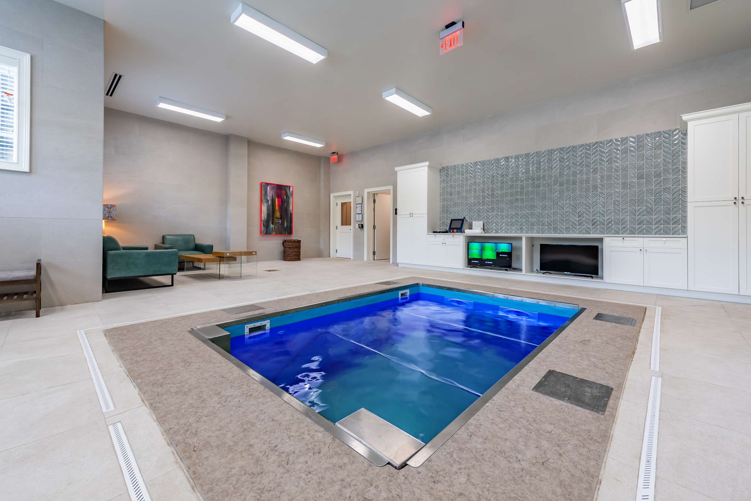 The Spa at Holbrook Woodstock features both a heated indoor saltwater pool and a heated outdoor saltwater pool. Specific temperature details for these pools are not publicly available.