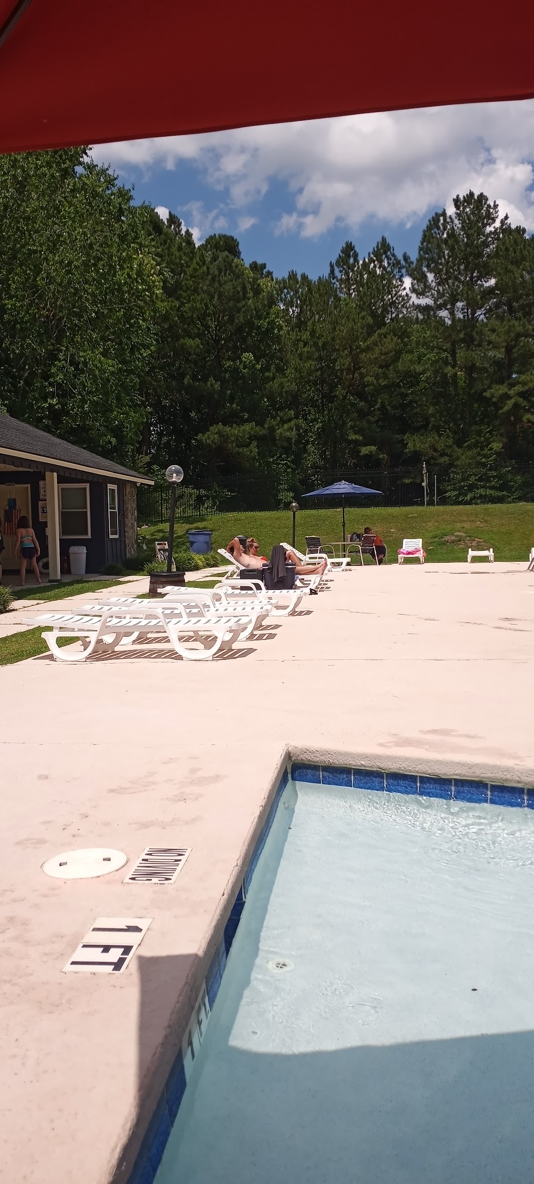 This pool is family friendly, clean and everybody's friendly. The baby pool is perfect if you have littles and it's close enough to the big pool so you can also keep an eye on your big kids. Plenty of space to eat lunch under one of the many umbrellas or the covered pavilion. If rain ruins your fun there's a ping pong table to play until the storm clears up.