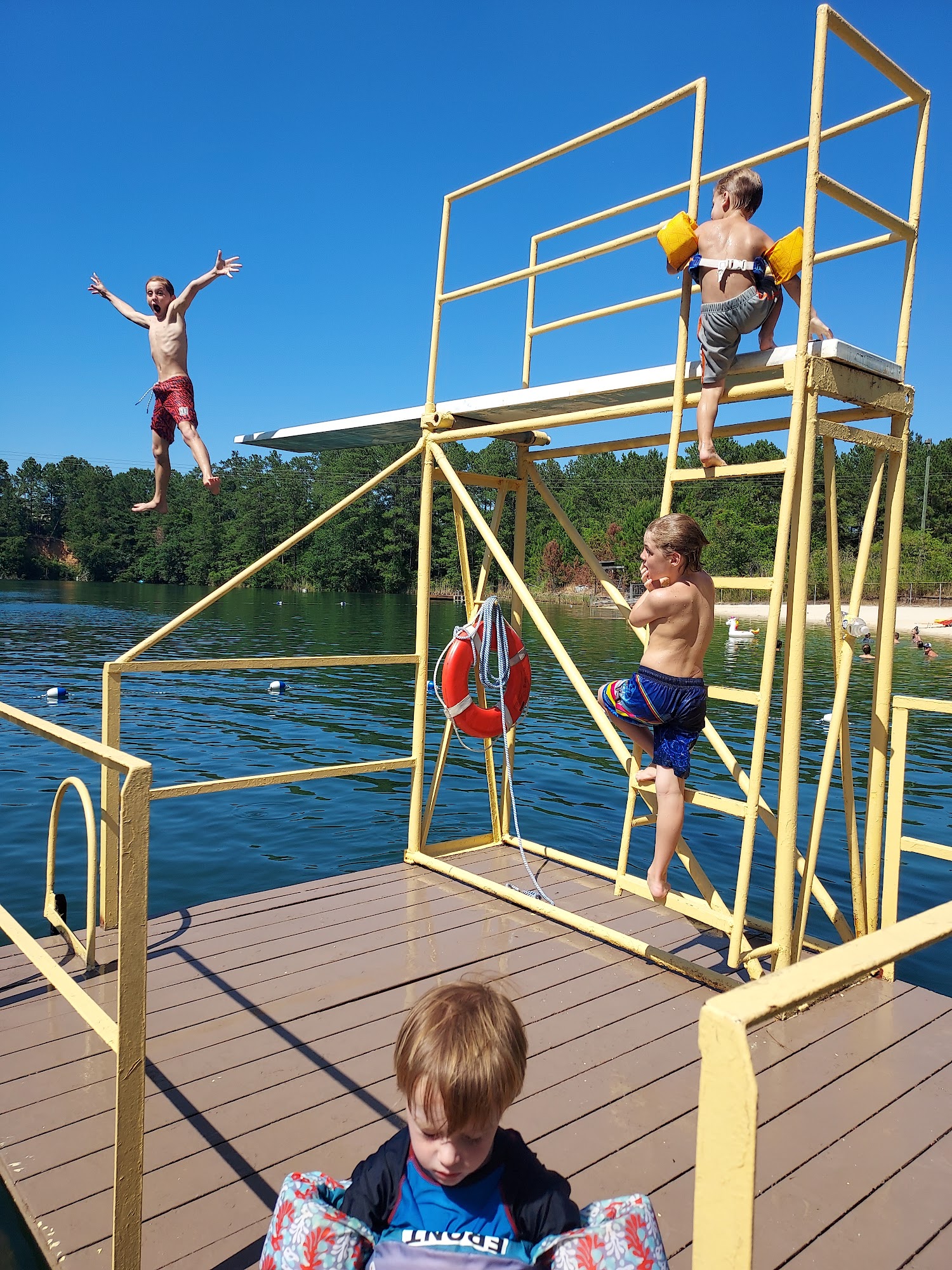 Place is awesome. I took my family for a fun day and it turned out to be a great place. Staff were friendly and welcoming. The slide and diving board was so much fun. You can rent all sorts of tubes and goggles. Buy snacks and drinks. When we first arrived my son was so excited to get in. I went in after him as all dads do to make sure it was safe and he was comfortable. I followed him up the dining board and forgot to take my glasses off and my necklace. I jumped in and both were gone when i resurfaced. The staff were so help and jumped in to find my belongings. I was so impressed by the way they handled the situation. Everything was found and believe my this part of the lake was 12ft deep. Took about a hour. Thank you