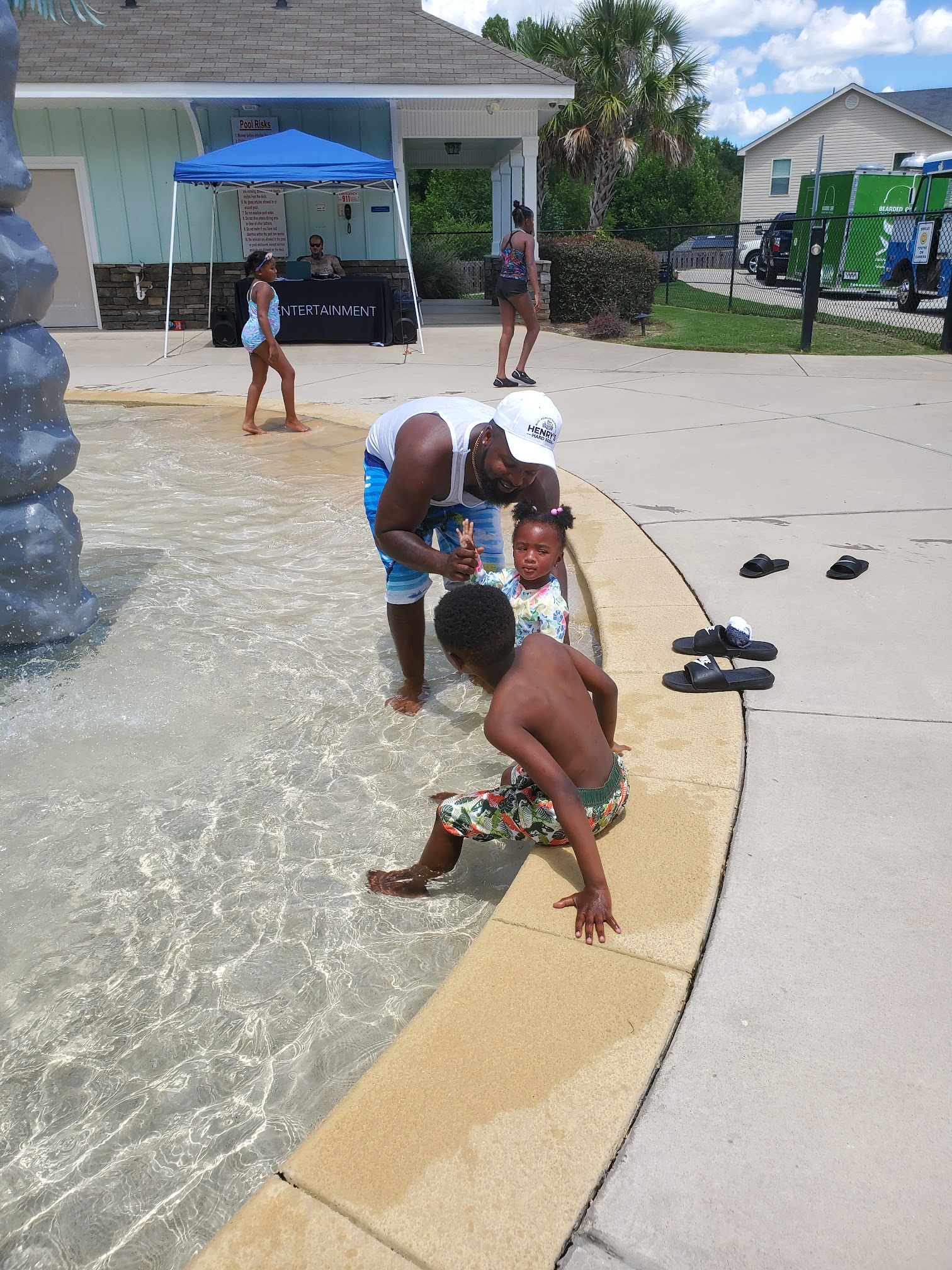 What are people saying (AI review summary)? The pool receives largely positive feedback, described as beautiful, resort-style, family-friendly, and secured, with ample seating and a nice shelter. Reviewers appreciate the waterfall feature, suitable for all ages, and its spaciousness accommodating multiple families. It's also noted as an excellent place for children to learn swimming. The surrounding neighborhood is considered nice-looking and safe due to the presence of many police officers. However, some common criticisms include the pool being busy, issues with the cleaning service resulting in green water instead of blue, and a frequent need for users to pick up trash left by others.