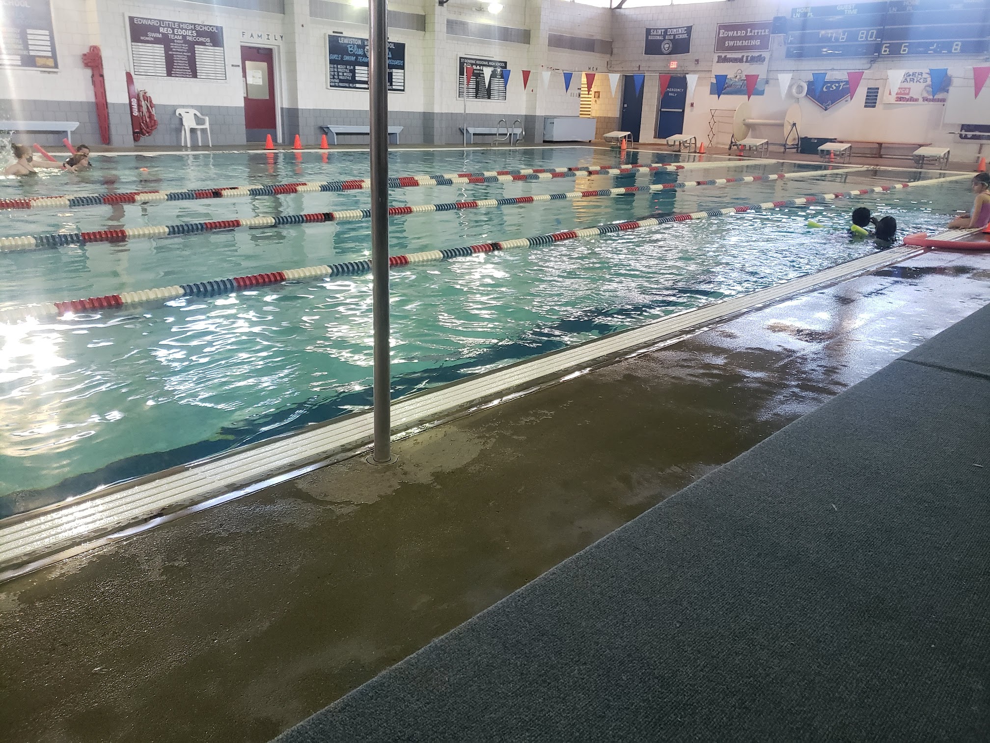 Very, very dirty locker rooms. We got a pass and came back to try it out before spending $ on cards, memberships etc. There was no pool rules published so we found out when we used the pass that we all had to take our street shoes off, even my wife that didn’t get in the pool. She was so disgusted at having to walk on the filthy locker room floor without swim shoes it pretty much ruined the mood. Not sure what the point of rinsing off under a shower really does when bacteria is obviously passed all over the floor. Swimming was ok but the lack of sanitization was very disappointing