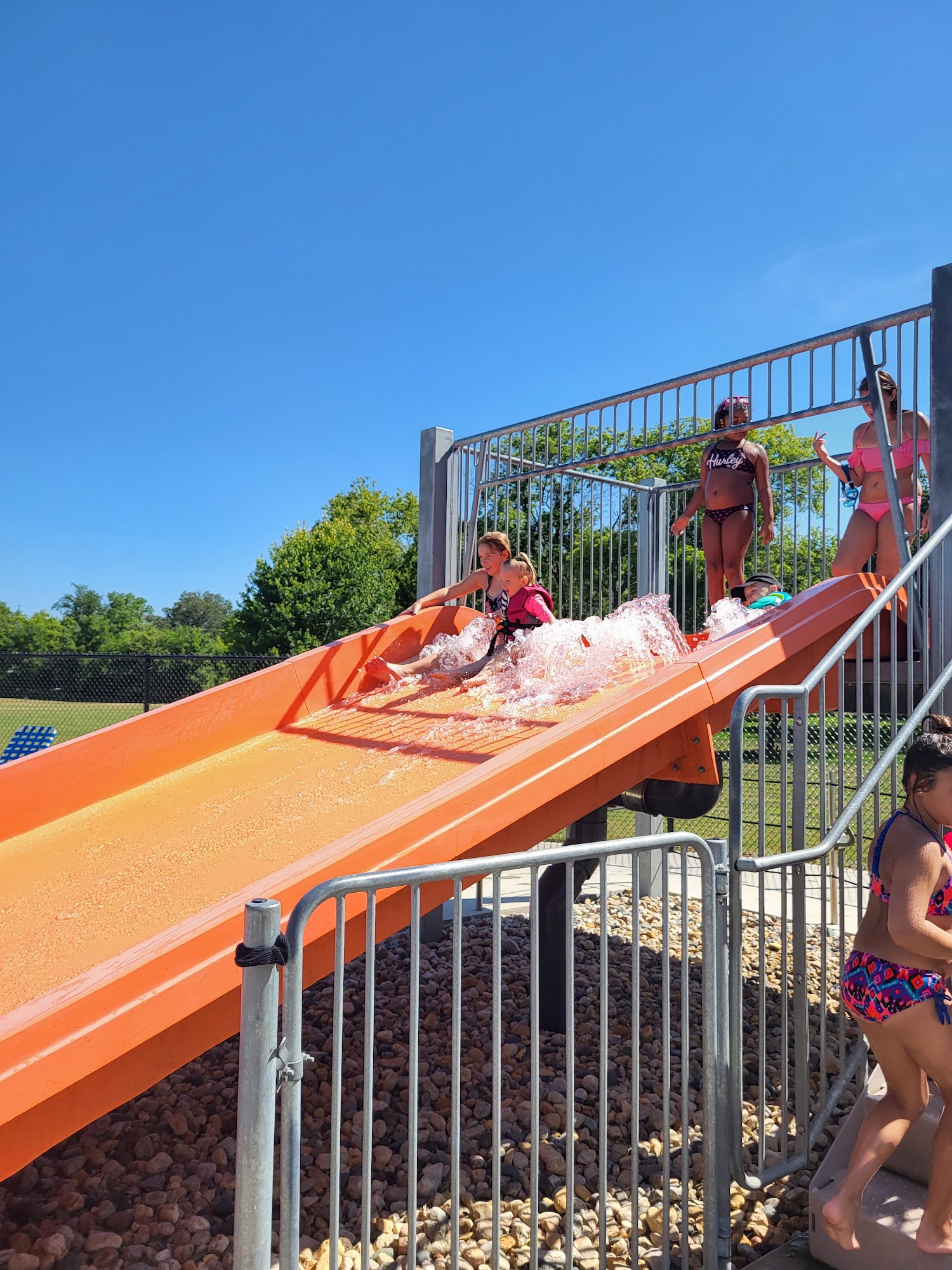 What are people saying (AI review summary)? Reviews for this pool are mixed. Positives include being very child-friendly with an awesome slide, and some reviewers praised the lifeguards for their positive attitudes and enjoyment of their jobs. However, there are significant criticisms, particularly concerning new management described as unfriendly, snooty, and prone to yelling, along with unexpected charges for non-swimmers. Several incidents involving inappropriate adult behavior towards children and kids blocking slides were reportedly handled poorly by management and lifeguards, leading to a negative experience and some patrons vowing not to return. It's also noted that the facility is cash-only.