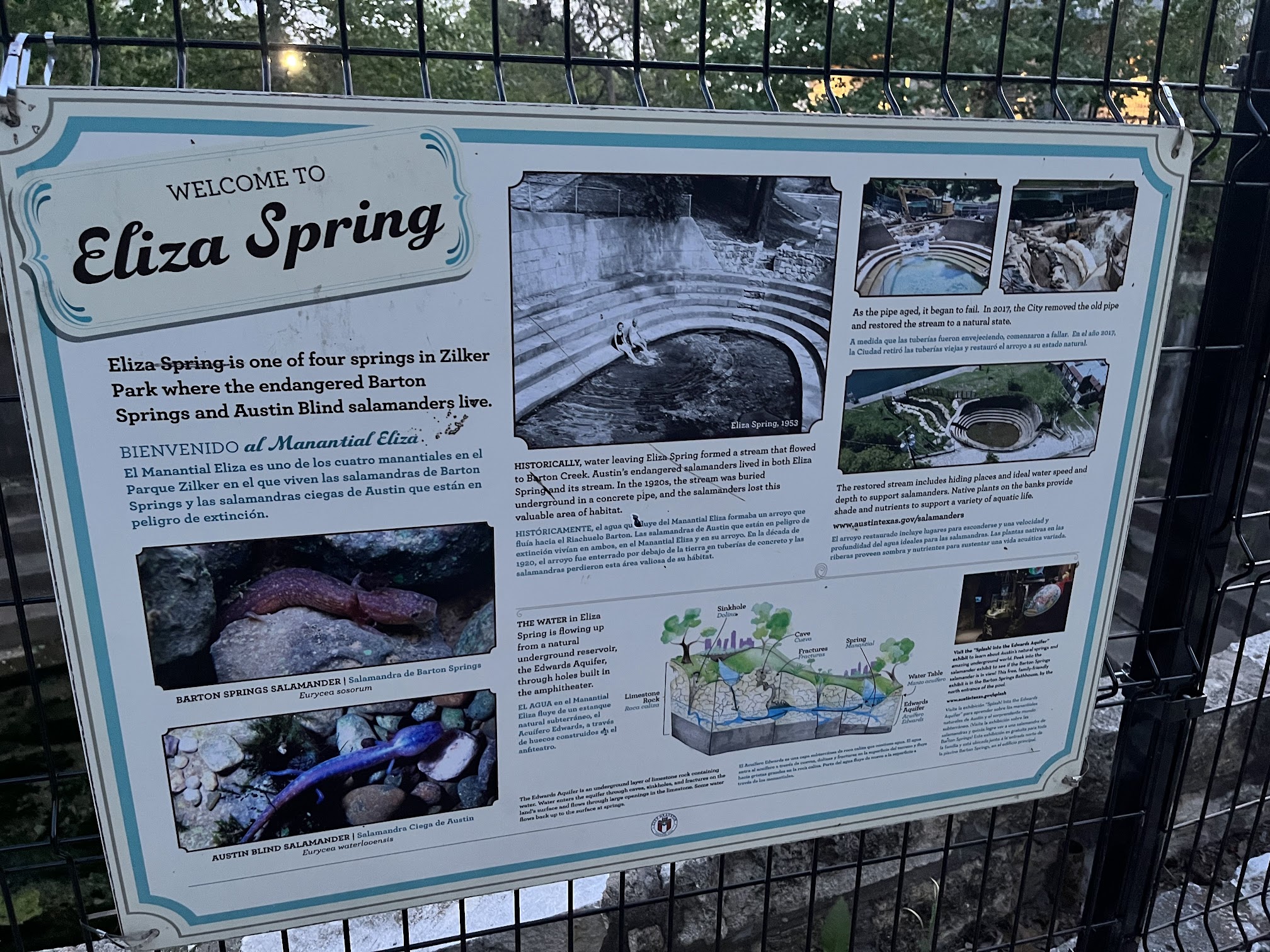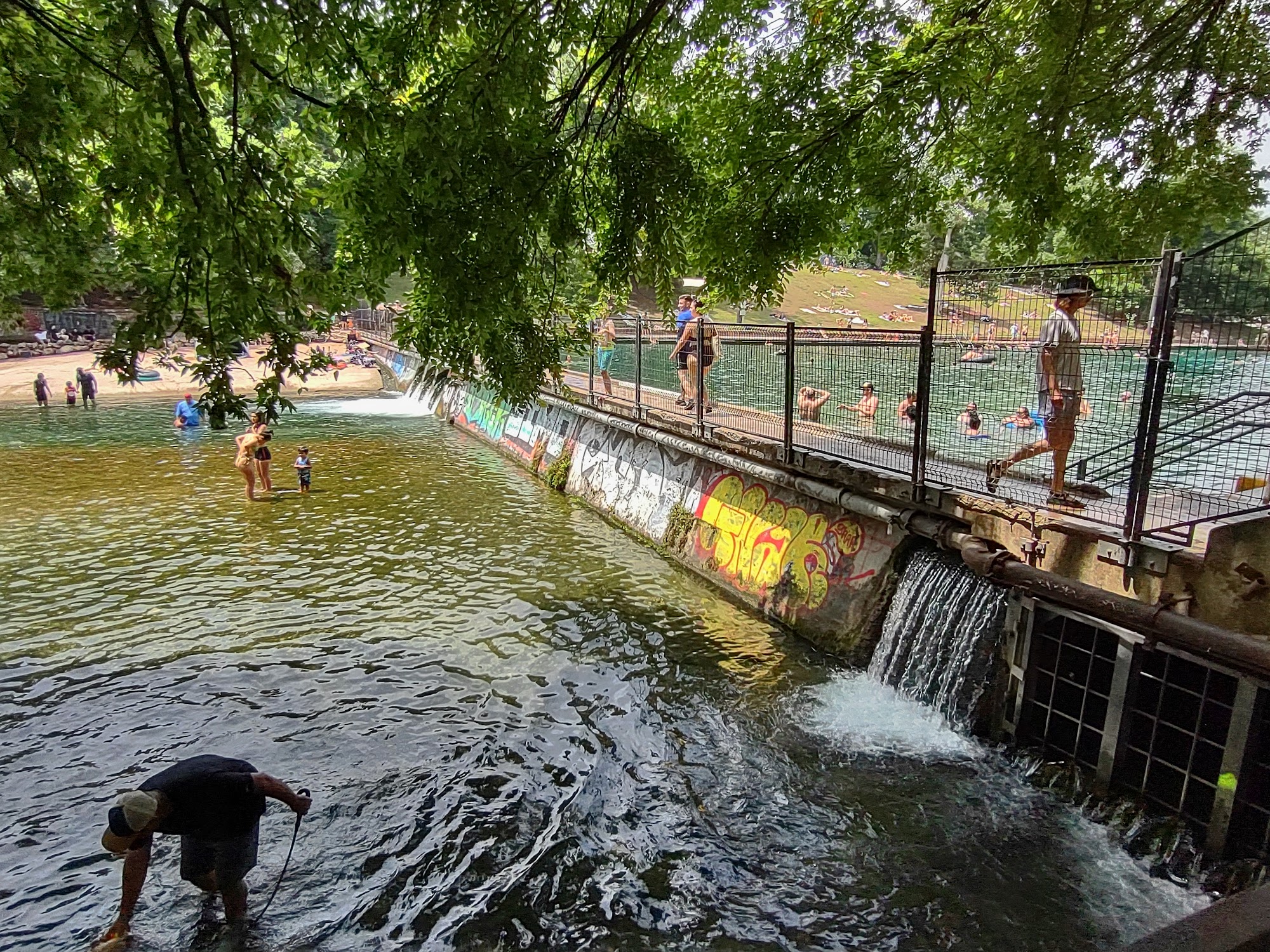 The entrance is chaotic, especially as a first time visitor. There’s not clear, large signage and the construction pathway made us question if we’d made a mistake in coming and if we were even in the right spot. But once we paid our entry fee and got beyond all the chaos, we discovered a pretty unique and beautiful treasure. A balance between natural spring and pool infrastructure - you can tell the city is trying to walk the line between serving the recreational wants of the community while still preserving its natural environment. Pretty cool. On that note, it’s a cold spring so be prepared for a “refreshing” boost of energy when you enter the water. While the rest of my group laughed at the shock of cold on a steaming hot day, my husband took about 30 minutes to get down the steps into the water. There was a mix of lap and recreational swimmers, and everyone seemed to have plenty of space. It’s a natural spring, so the bottom depths change quickly in certain areas. So be careful with the short folks who might not swim too well. All in all, a beautiful spot to enjoy the day. Definitely a more unique place to swim than a regular pool. I hope the construction finishes quickly, and the city maintains the natural beauty of the spring.