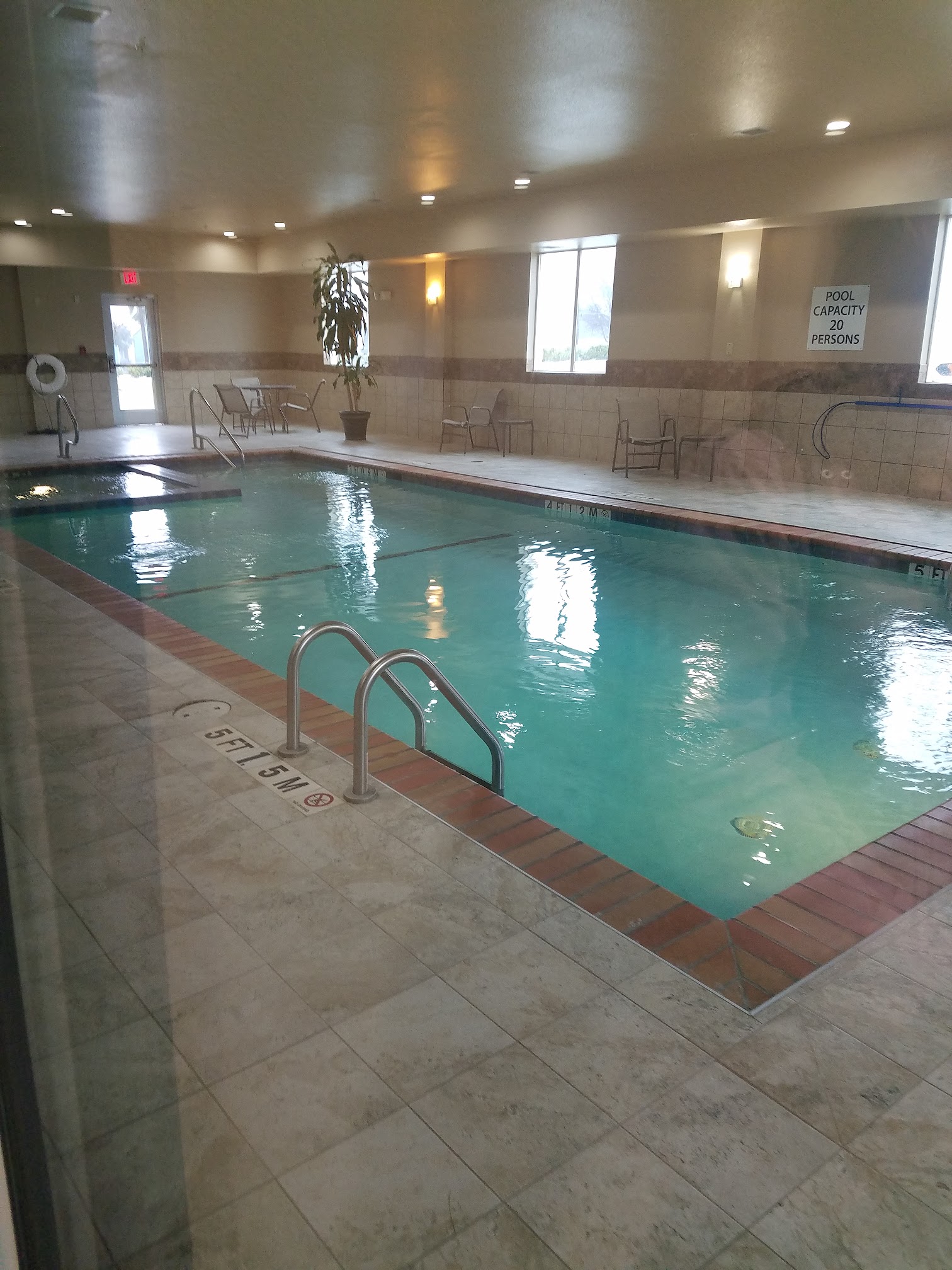 The indoor pool at this location is consistently heated and maintained at a comfortable temperature between 85-86 degrees Fahrenheit.