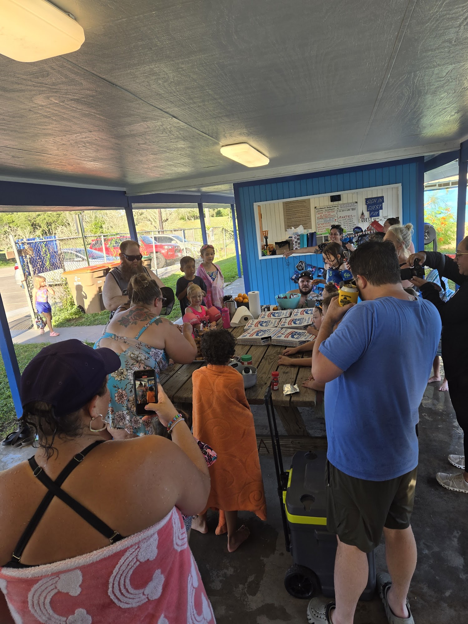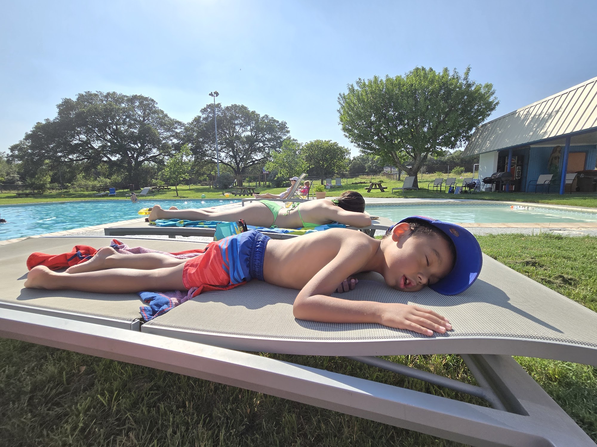 Nice enough pool. Very simple. No slide or diving board. There's grass everywhere and there were ants in a couple places we set up on the pool deck because the space is very wild and a little overgrown. A couple tables were pretty filthy. Nice space for what it is.