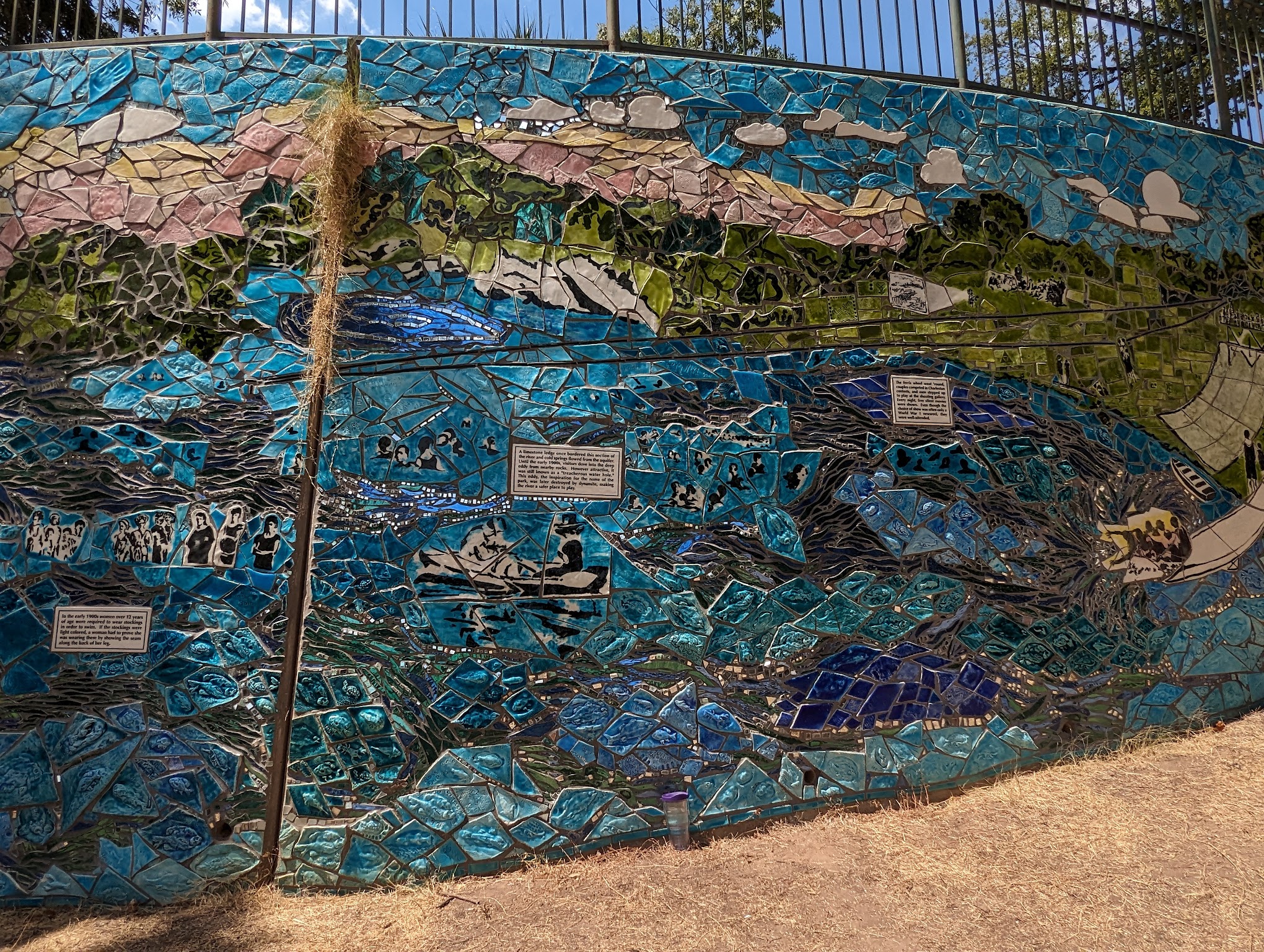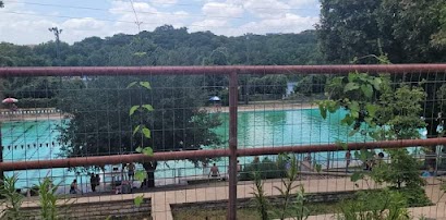 Cold spring-fed pool (popular for lap swim) featuring shaded lawns, plus a café.
