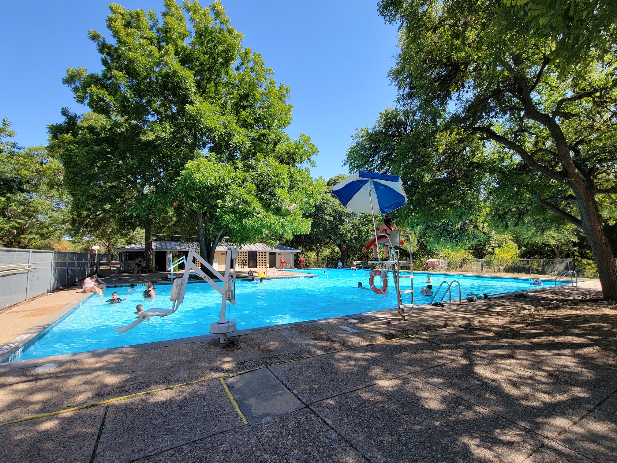 Love the pool but it’s often covered in leaves. Lifeguards just sit around instead of skimming them out. Nice & shaded. Needs a clock!