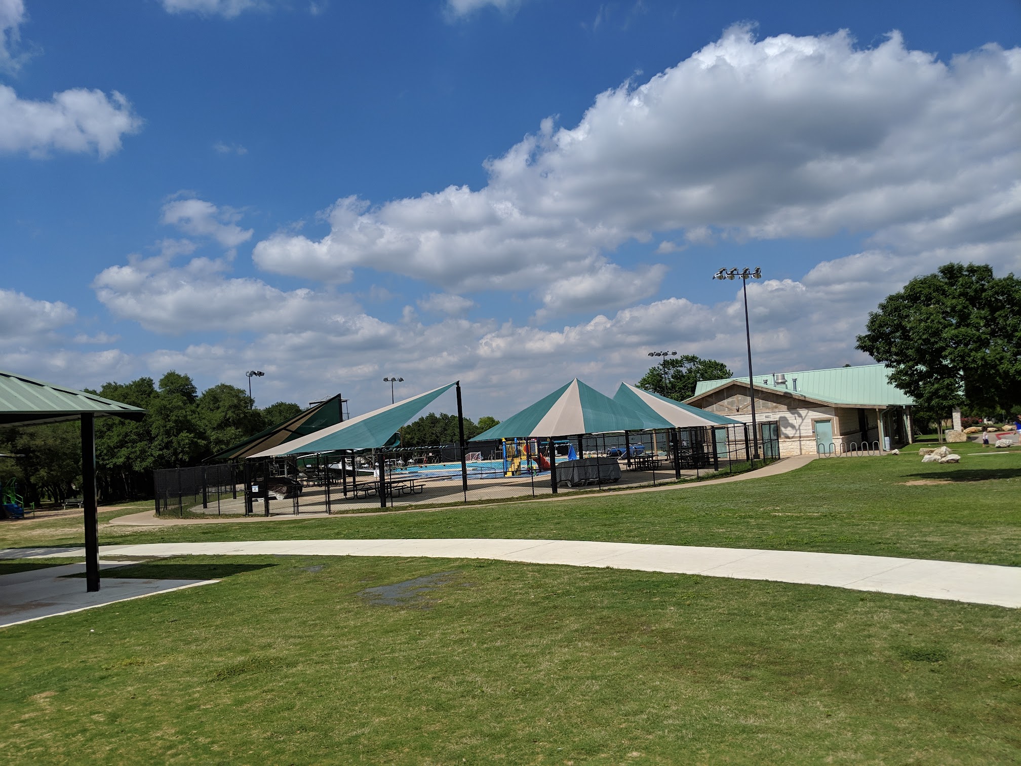 Pools throughout Texas should be designed this way... Great for swim meets, slide for kids, and a kiddy pool for little ones that rivals a water park. This is a great facility at one of Central Texas' best community parks.