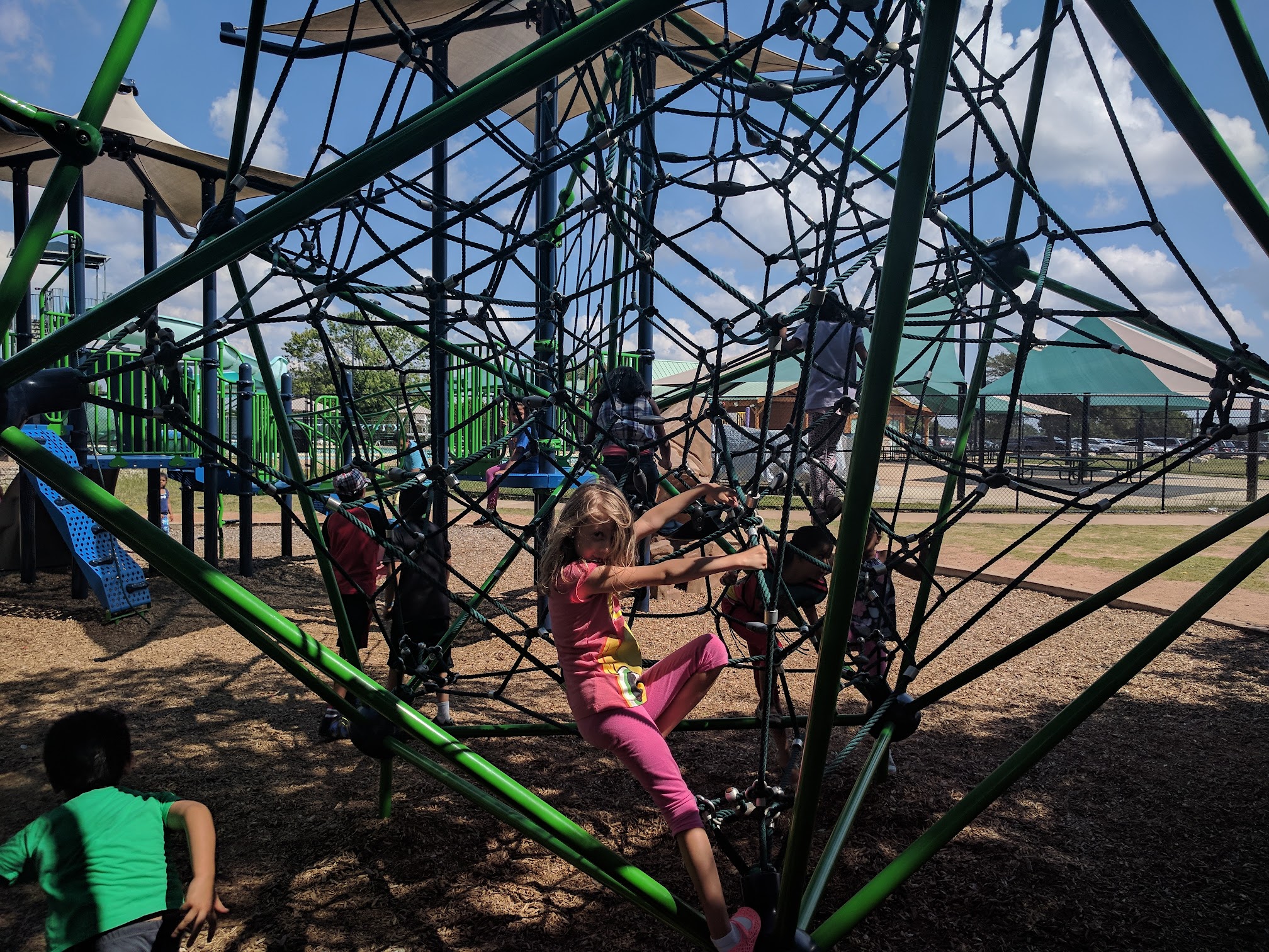 Drove over to check the park area and loved it. Nice, modern playscape, swimming pool, sandy, volleyball area, grills, walking trail, nice grassy fields and trees. The basketball courts were even covered. Going back tomorrow to hang out at the pool. It even has a water slide and only 3.00 to get in.