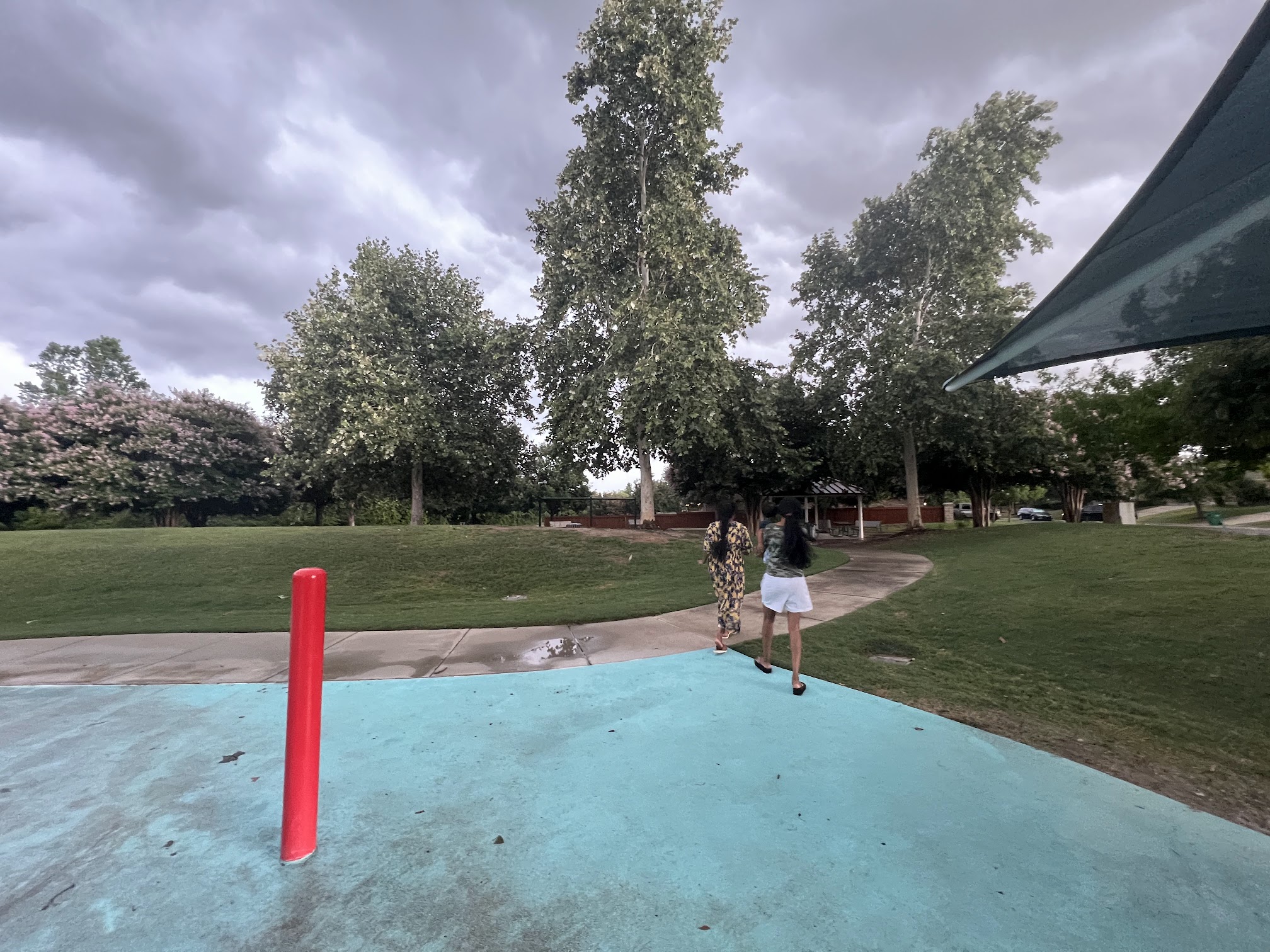 Summer 2024 Has a senor on the shorter red pole that will go off for a timed amount of time good shade and a bathroom available!