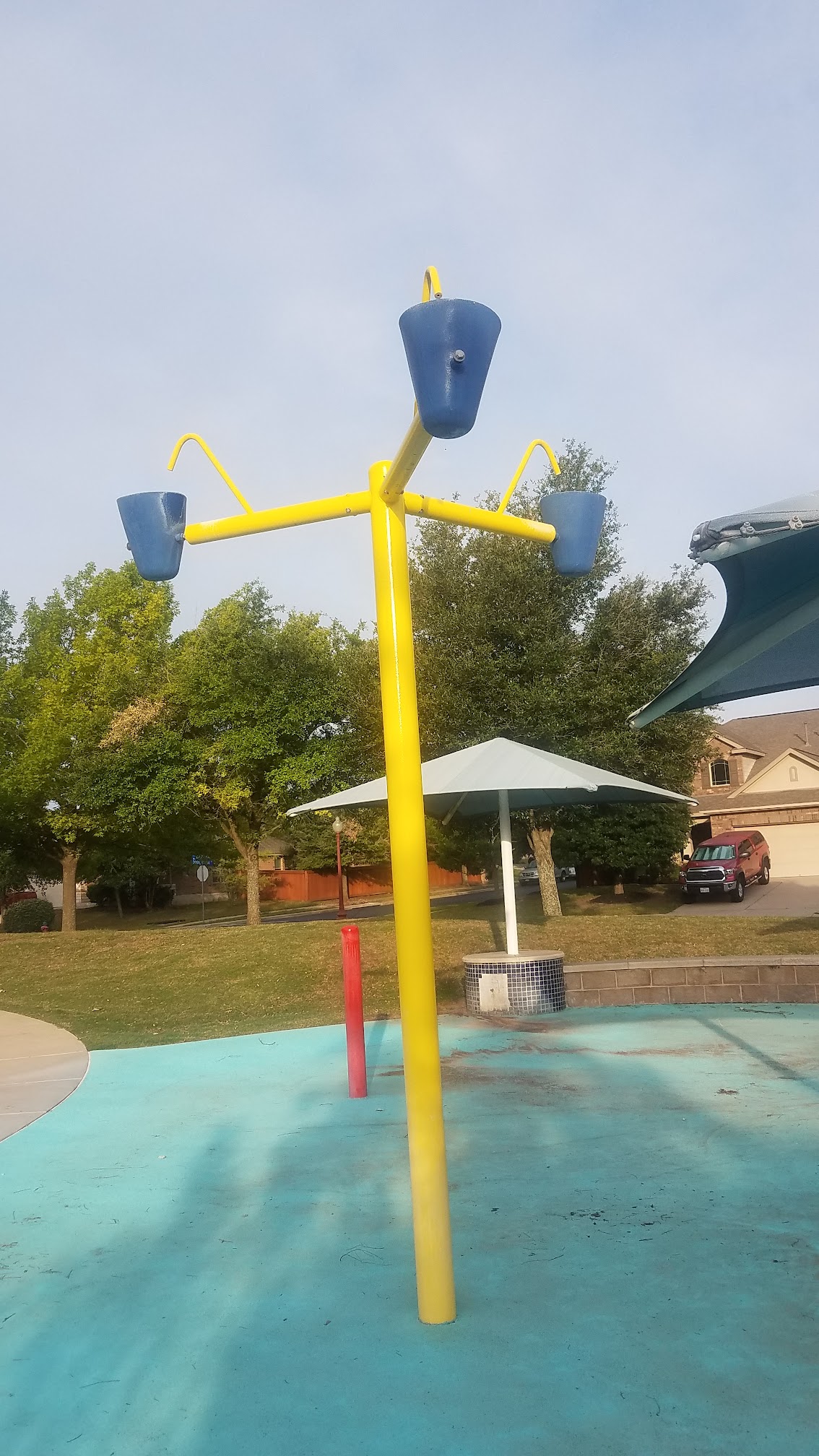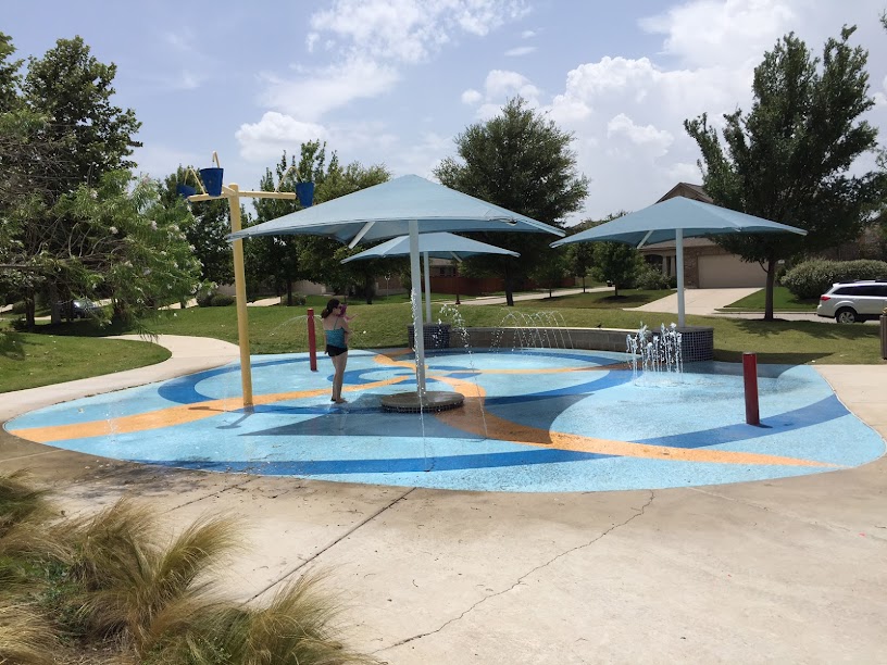 Fun little spot to stop and play in a little bit of cool water. Small kids will have the best fun. It does have some shade and the water pipes are on a 90 second timer to turn off. This is actually very fun for the kids to run and touch the pole to turn the water on for another 90 seconds. It is hidden in a neighborhood so you feel comfortable just hanging out. There is a bathroom available and some shaded picnic tables too. Bring some water for yourself, no fountain near by. Worth a 30 to 60 min visit.
