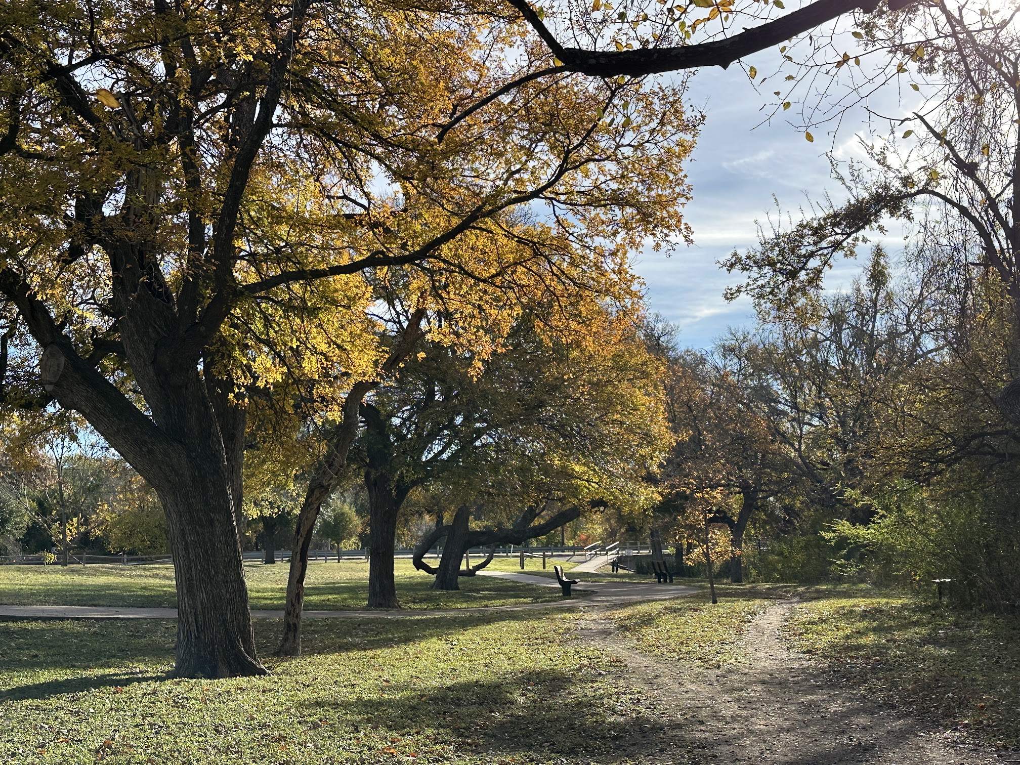 I go to this park pretty often. Has good walking trails, pretty trees and flowers, and plenty of benches. There’s a basketball court and a pool and many people bring their dogs, so there’s always people there and you never feel alone and creeped out anywhere.