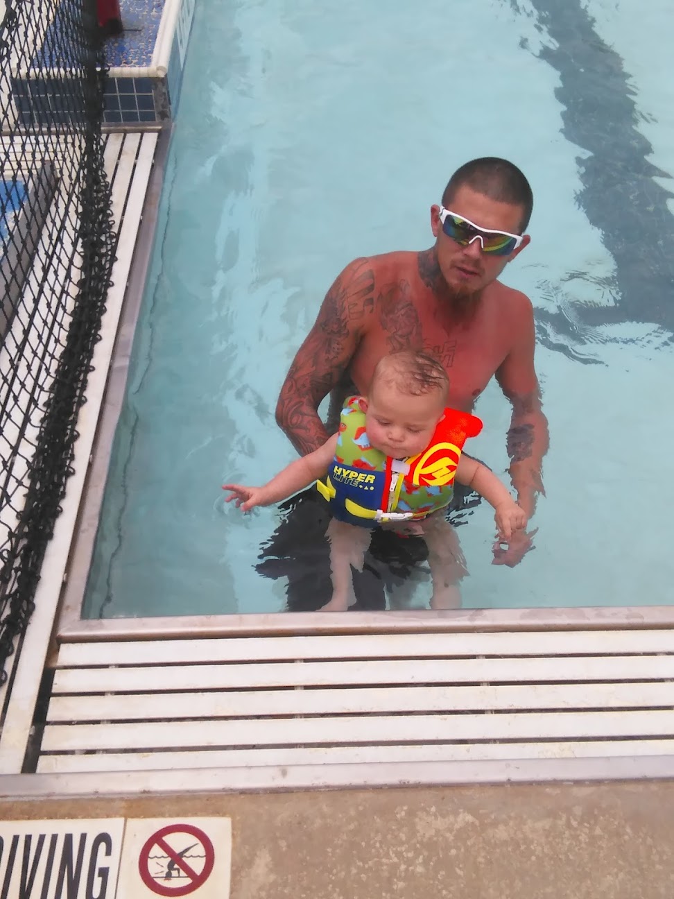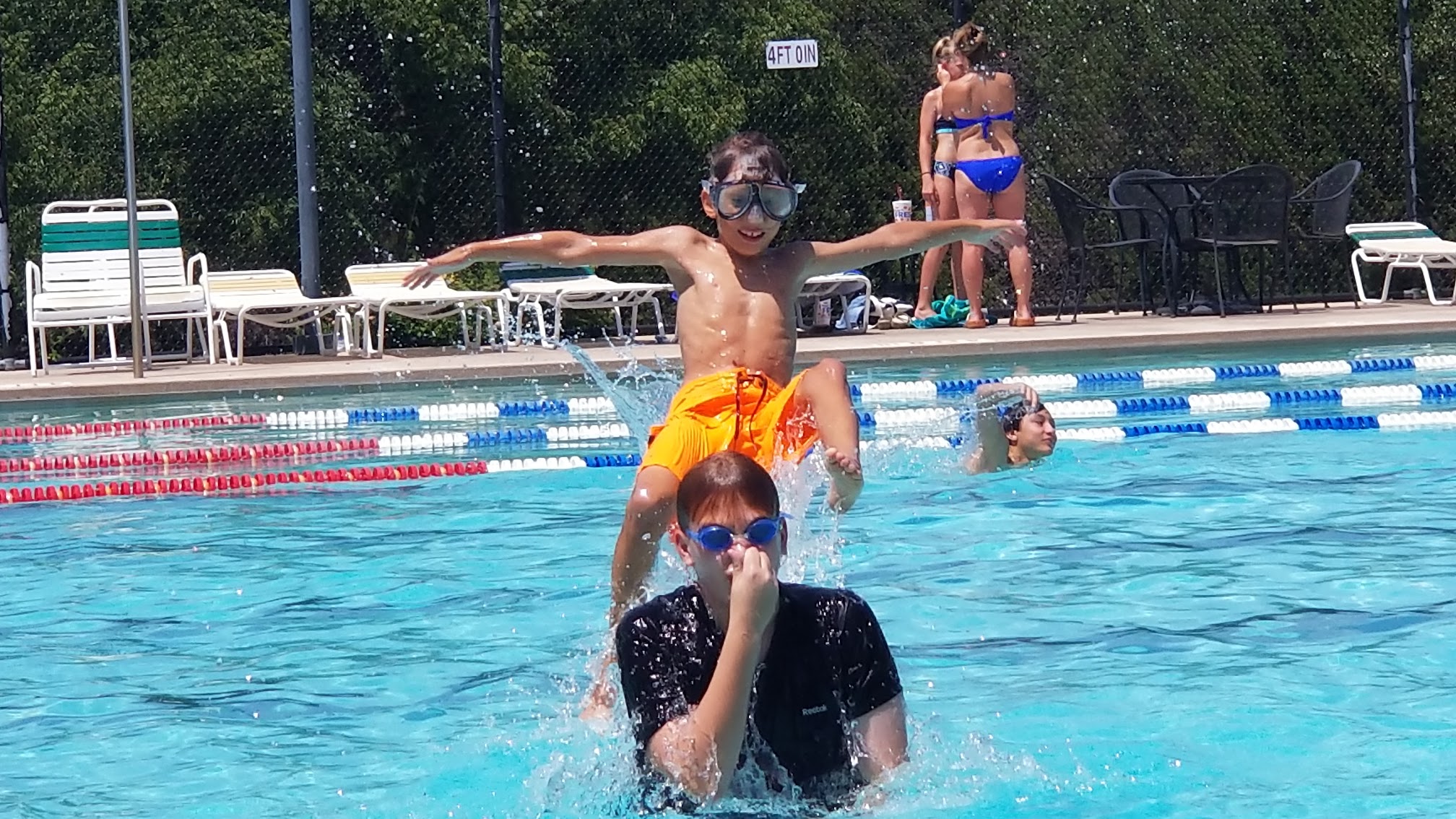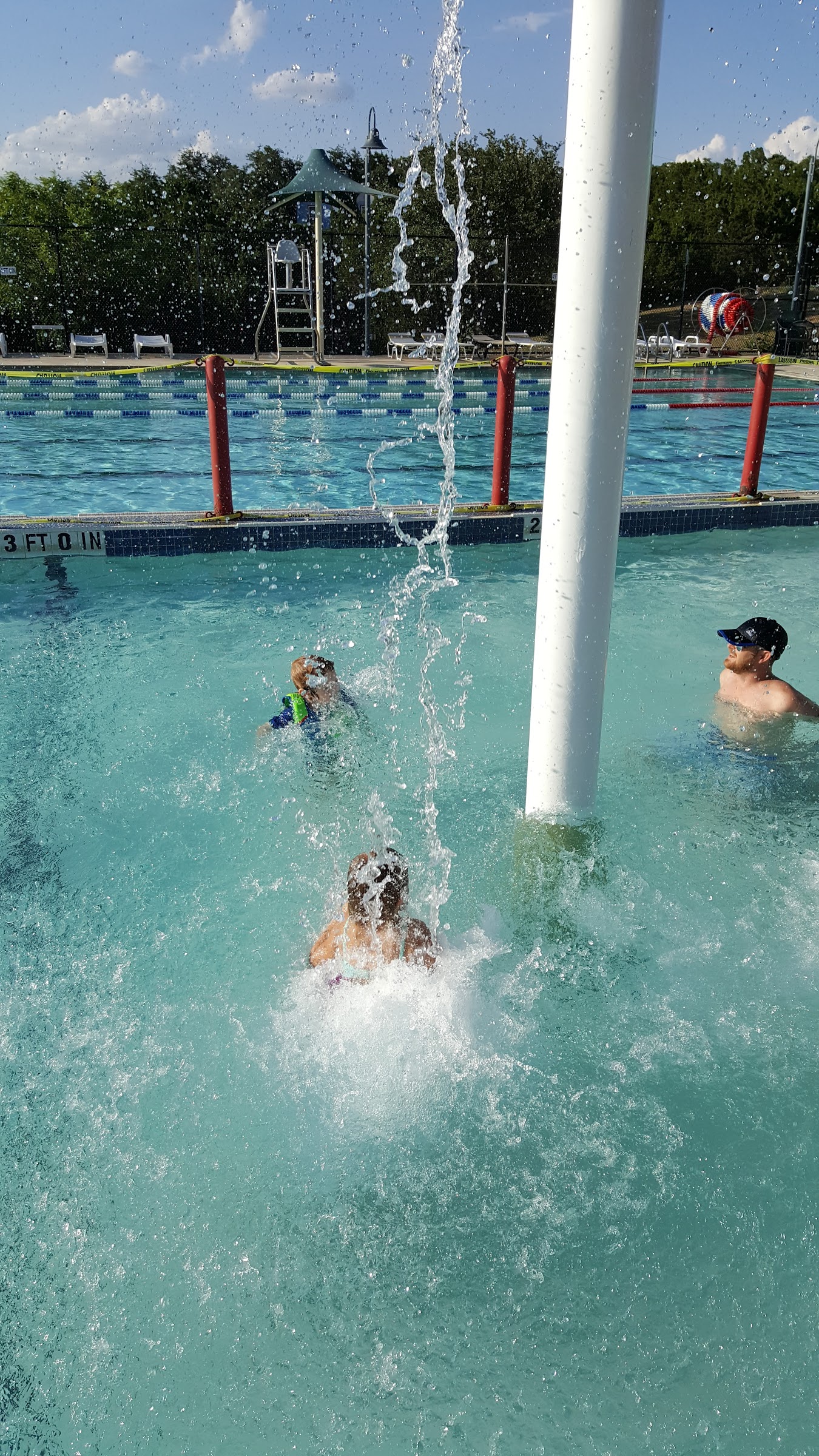It's a clean pool, 2 pavilions, shaded places to sit. There's bathroom facilities that are clean, vending machines, a water slide, drop buckets and an umbrella water thing. Overall it's a great place to play with the kids.