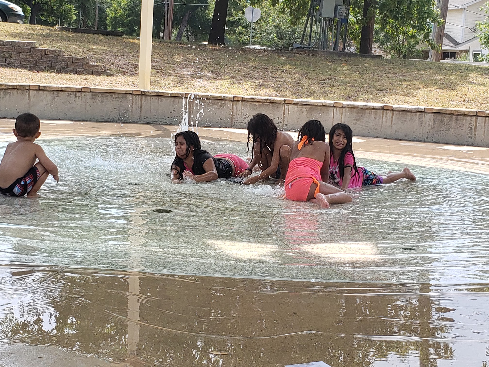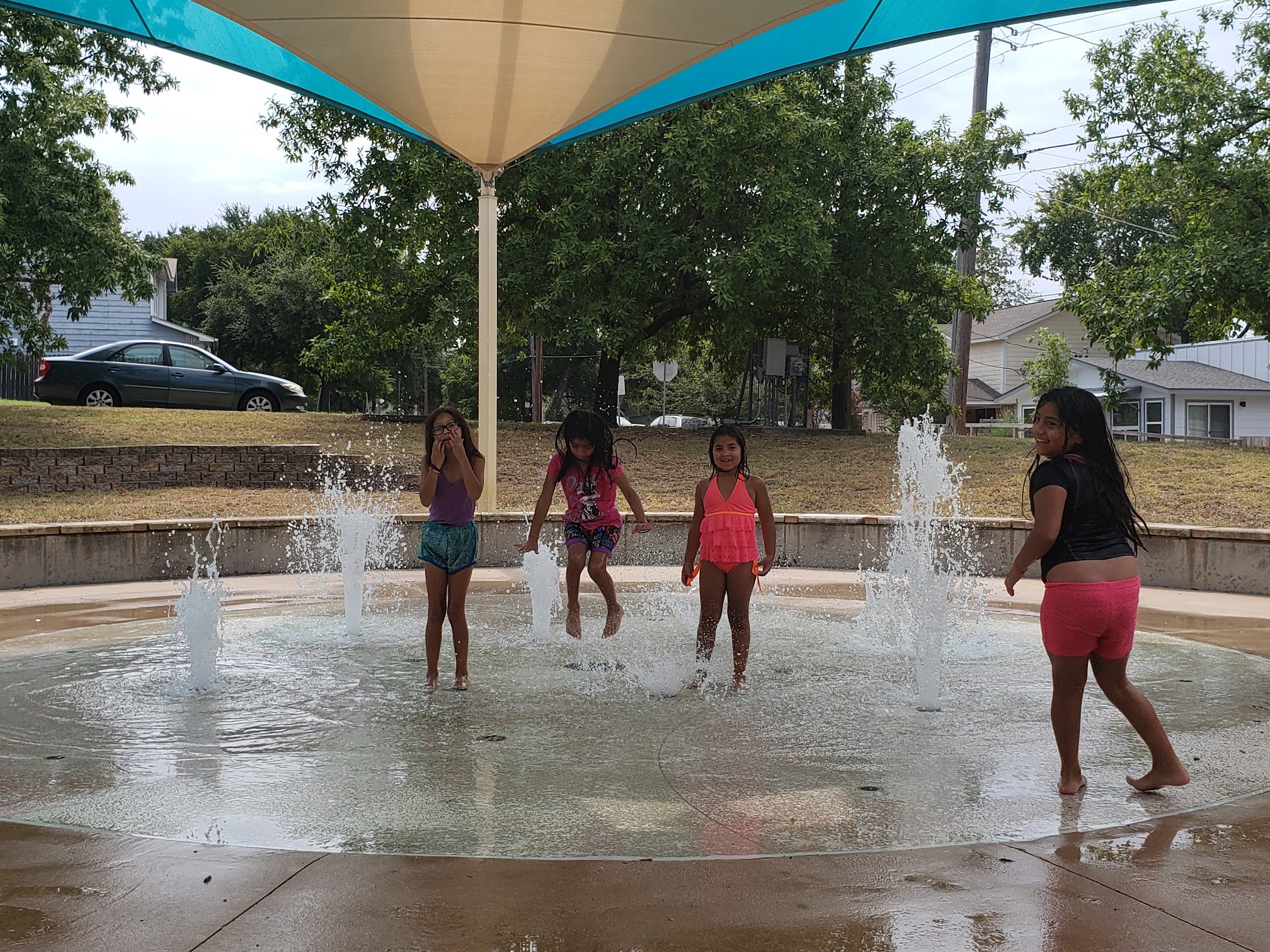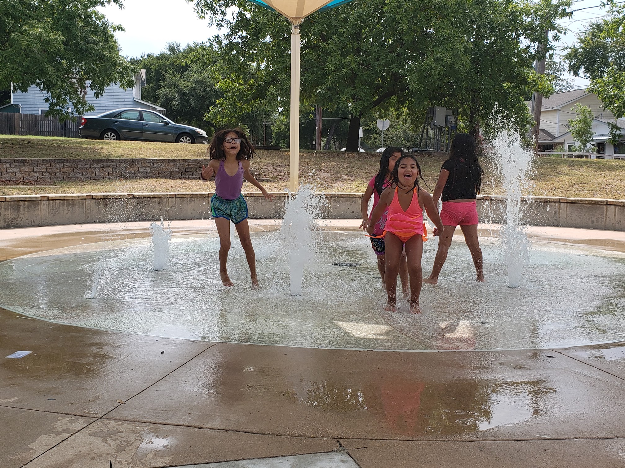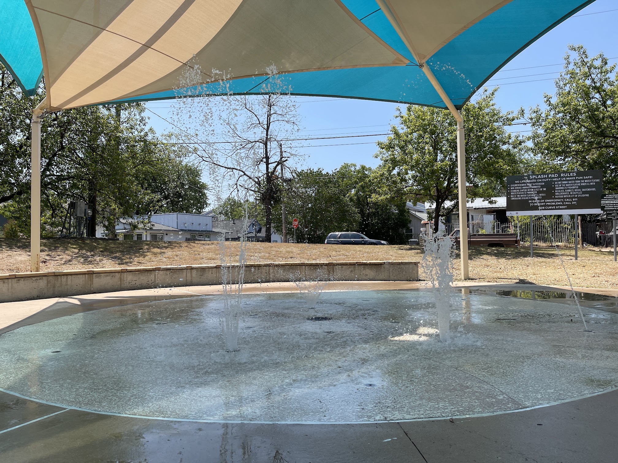 Only one fountian was working when we came a few weeks ago, but I called the city, so hopefully it's back up now. It had nice shade and benches for parents watching kids in the splash pad, but my kids got bored quickly because of the lack of working fountians.
